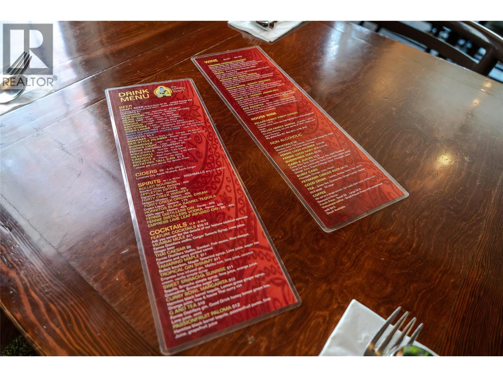 An incredible opportunity to own The Curry Bowl, a well-established, locally owned restaurant in the beautiful town of Fernie. Operating since approx. 2002, The Curry Bowl has been a local favourite for over two decades, known for its quality food, welcoming atmosphere, and exceptional service. The restaurant offers 32 seats inside plus 18 seats on the rooftop patio - the only rooftop patio in Fernie - featuring breathtaking mountain views. It’s a one-of-a-kind dining experience that keeps locals and visitors coming back. Offered as a share sale, this is a rare fully turnkey investment opportunity including the building, established business, and all equipment. The Curry Bowl’s diverse menu highlights Thai, Indonesian, Vietnamese, and international flavours, delivering bold dishes that have built a loyal customer base. The building has seen numerous updates in recent years, including a freshly painted kitchen, replaced grease trap with cleared lines, newer furnace, upgraded plumbing and electrical (200AMP), and ongoing maintenance reflecting pride of ownership. The large commercial kitchen is well laid out. Additional features include an upstairs seating area and office, plus an unfinished basement perfect for storage. Rear parking provides convenient access for deliveries and staff. This well-loved, meticulously maintained restaurant is fully turnkey and ready for its next owner to continue its success in one of BC's most desirable mountain communities. (id:44393)