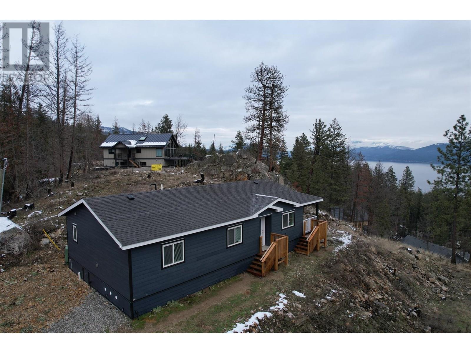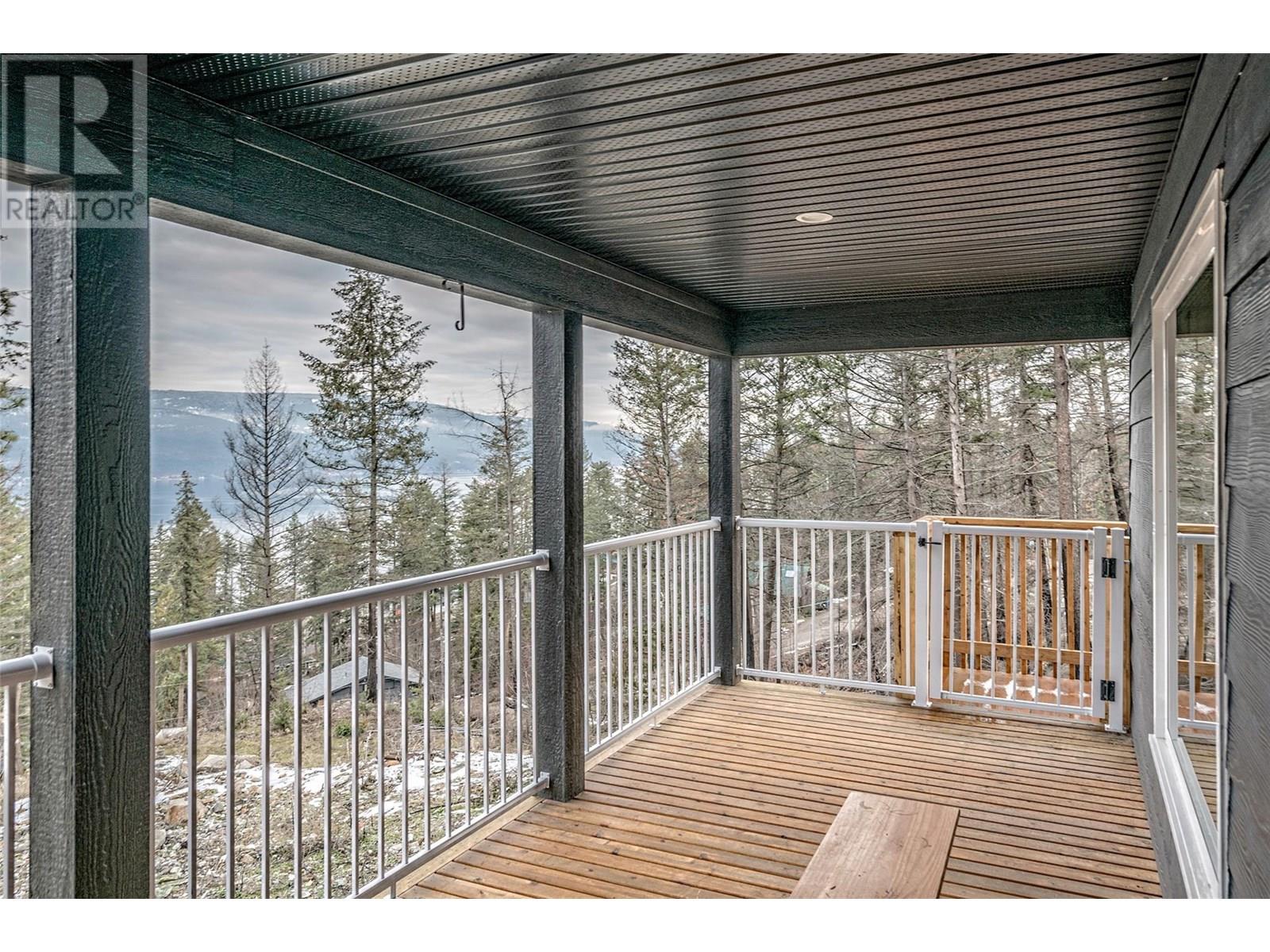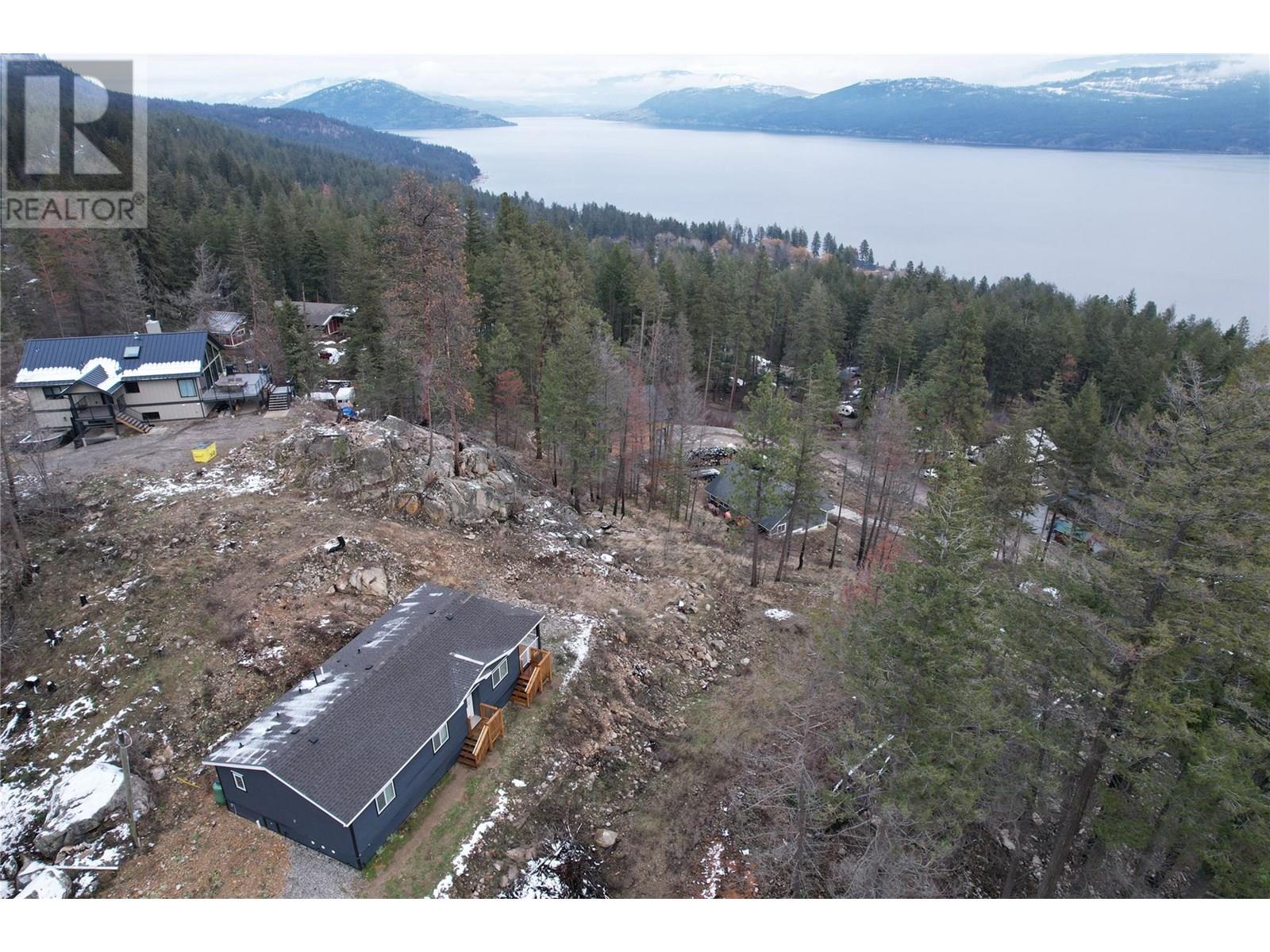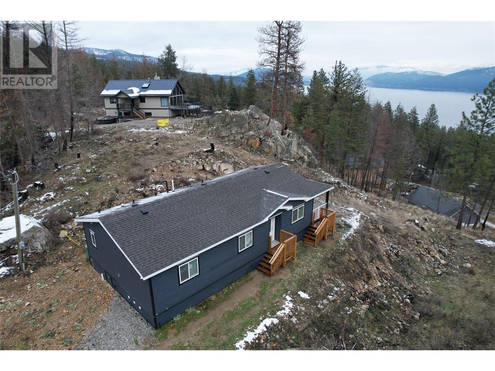 This 2 bedroom plus den, 2 bathroom, one story home was newly built in 2022. It features an open floor plan with the kitchen, living and eating space combined and access to the covered deck from the dining room. Rounding out the house is a handy laundry/storage room and a flexible den space. Enjoy some privacy from the covered deck and take in some incredible views of Okanagan Lake. The home sits on just under one acre of land that is low maintenance and offers great outdoor adventures right in your backyard. The home is an approximate 30-minute drive to Vernon and just 12 minutes to Fintry Provincial Park. (id:44393)