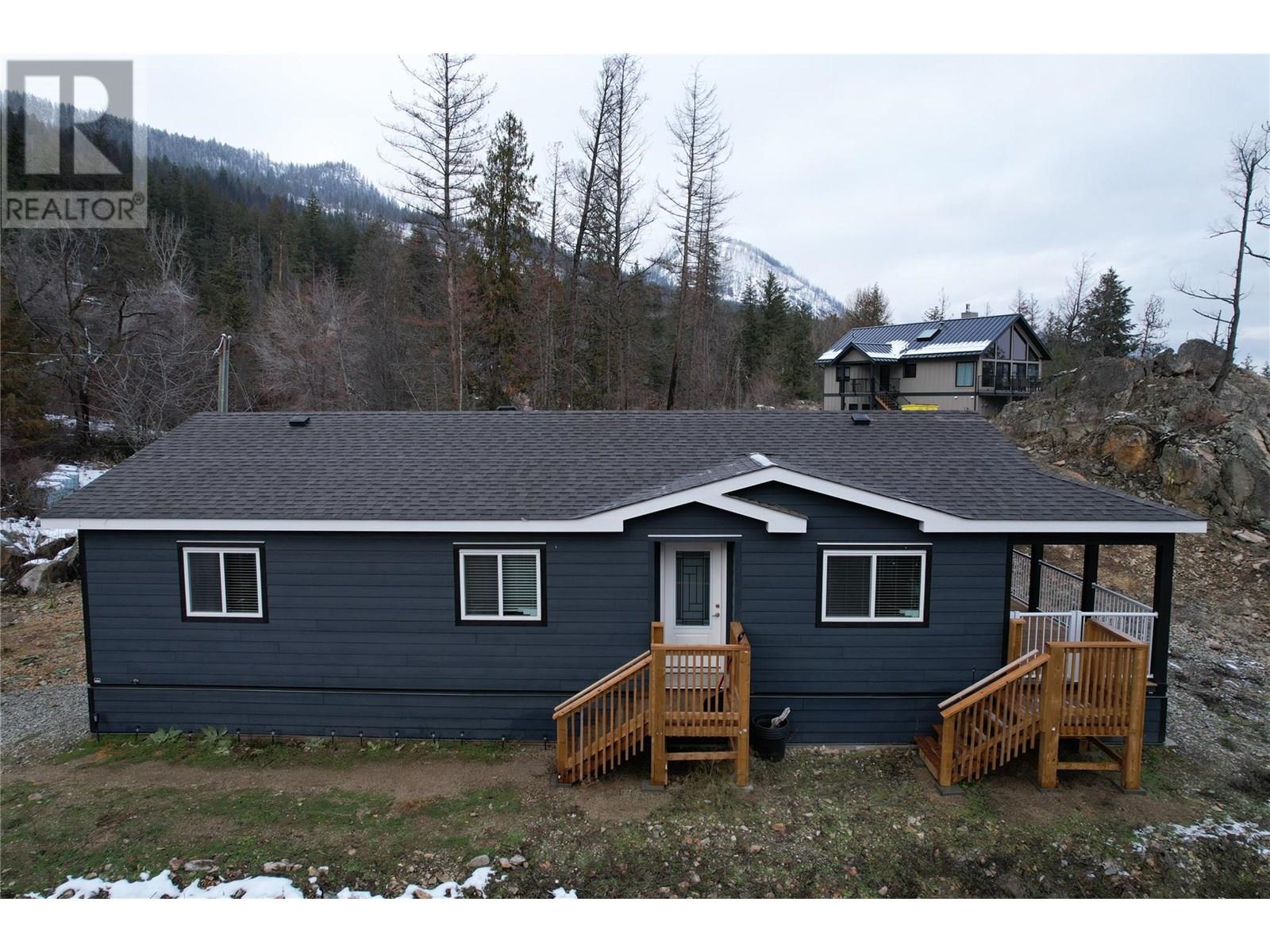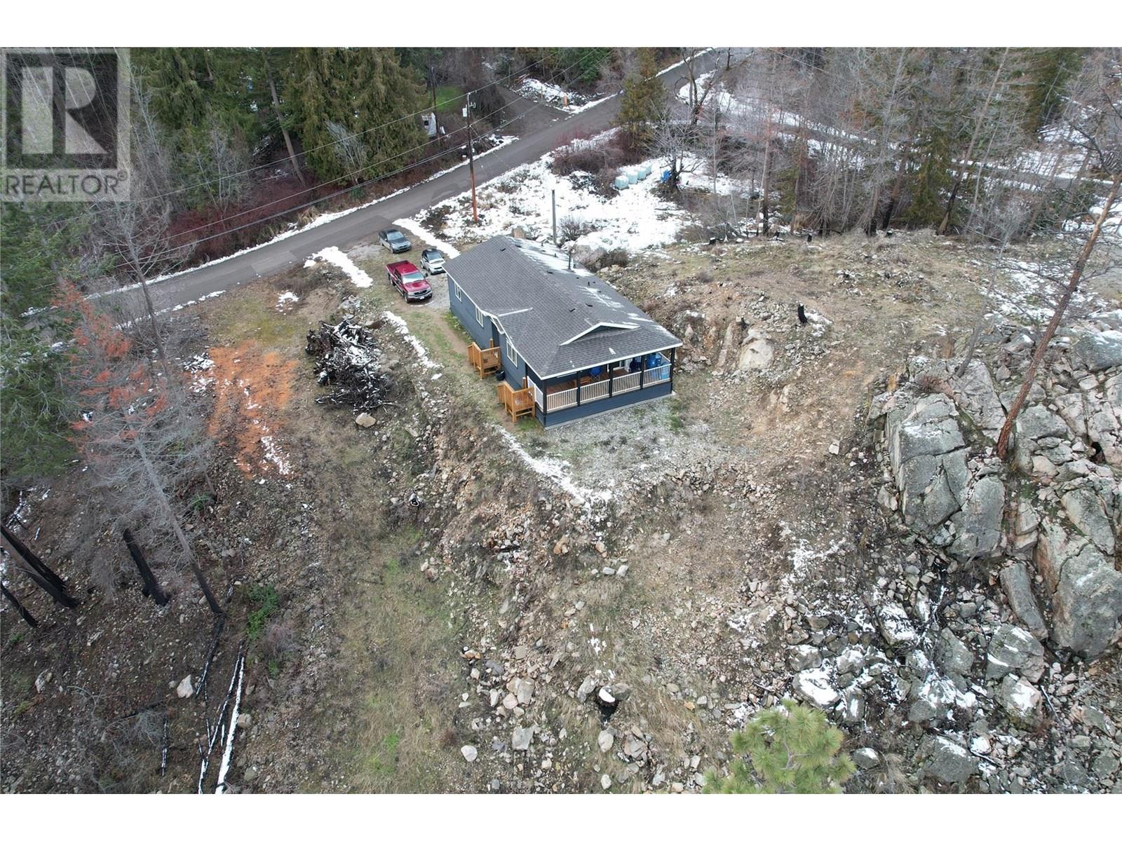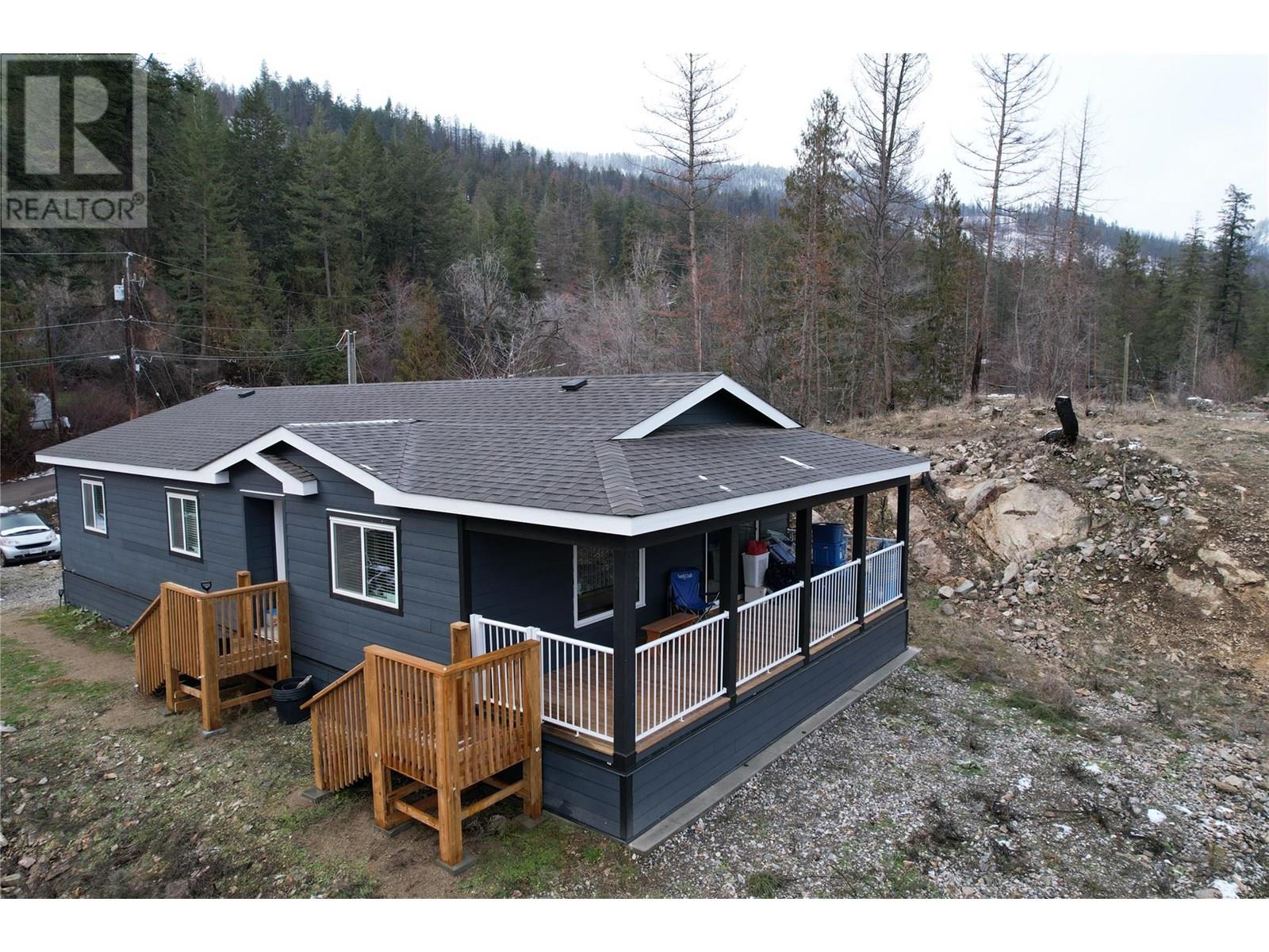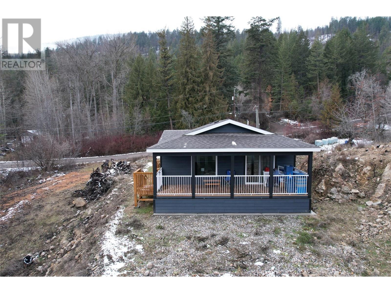 This 2 bedroom plus den, 2 bathroom, one story home was newly built in 2022. It features an open floor plan with the kitchen, living and eating space combined and access to the covered deck from the dining room. Rounding out the house is a handy laundry/storage room and a flexible den space. Enjoy some privacy from the covered deck and take in some incredible views of Okanagan Lake. The home sits on just under one acre of land that is low maintenance and offers great outdoor adventures right in your backyard. The home is an approximate 30-minute drive to Vernon and just 12 minutes to Fintry Provincial Park. (id:44393)