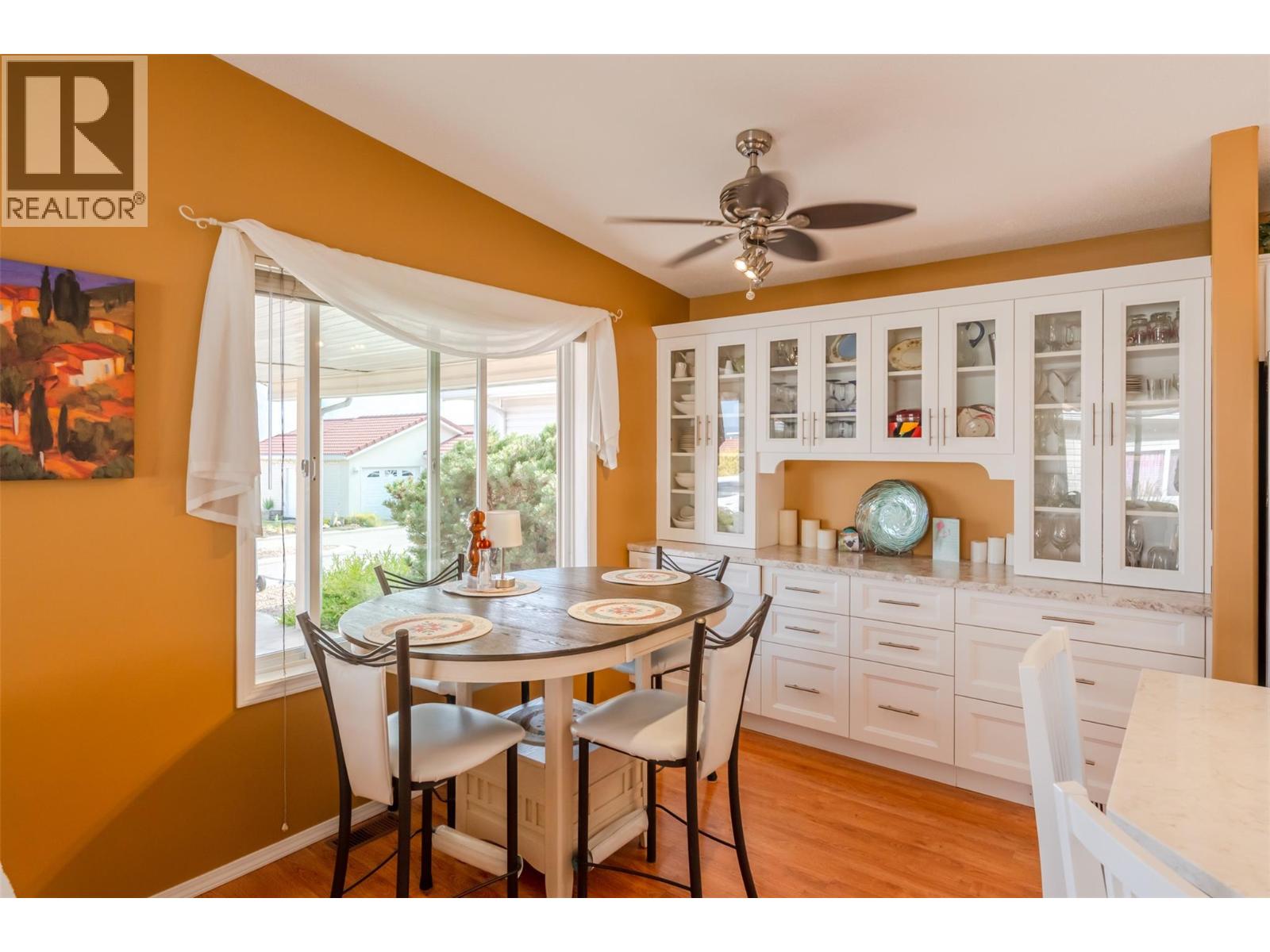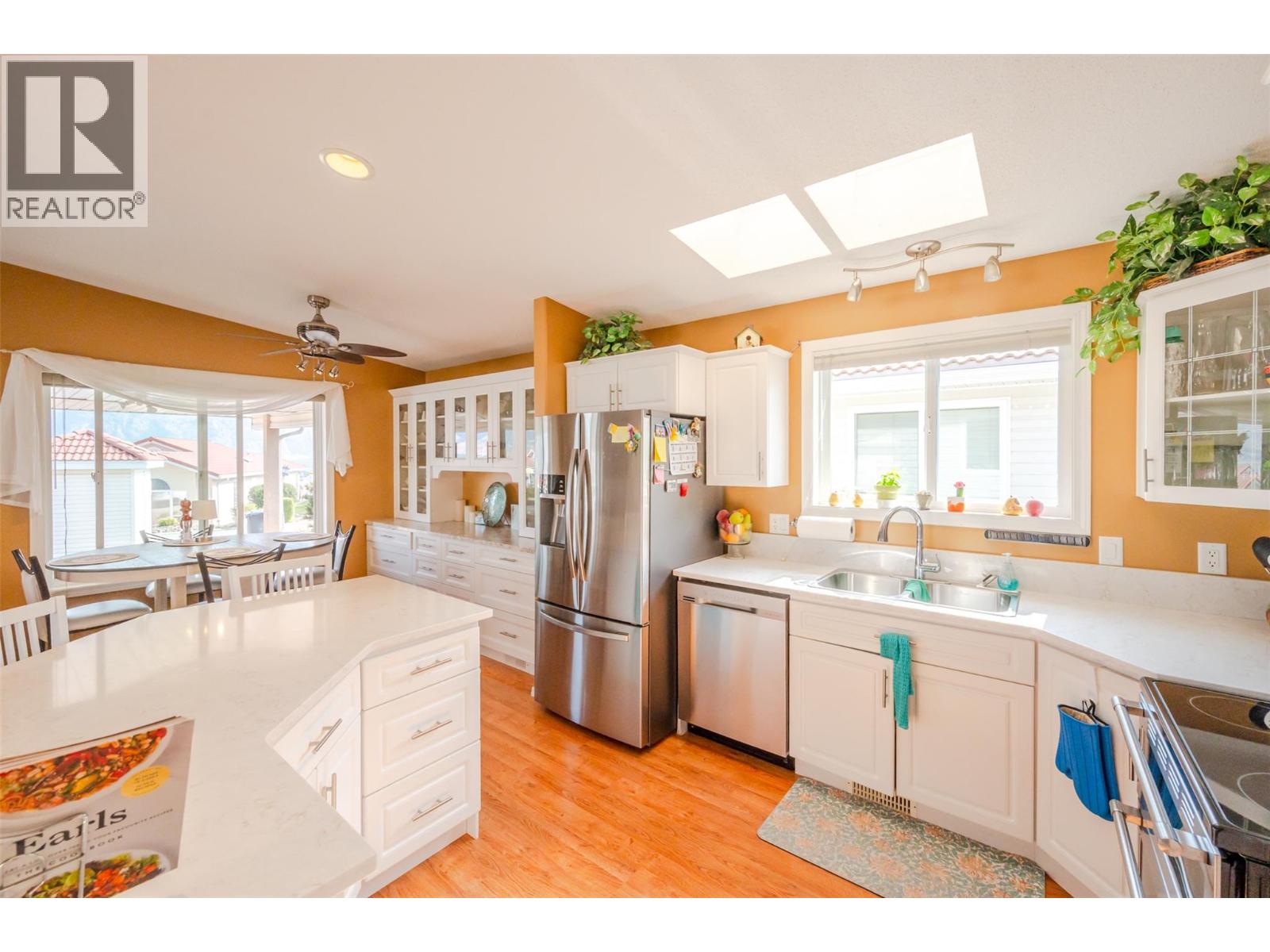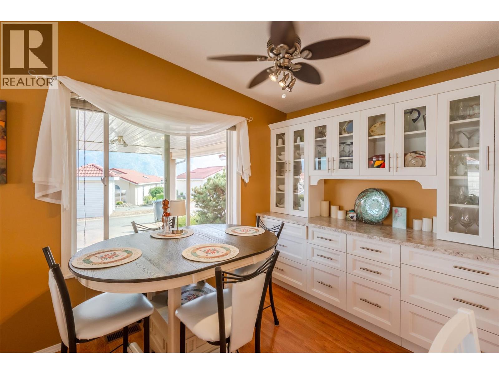 $120 MonthlyCasita Del Sol is a gated 55+ community in which you will find this home now for sale for the first time! The best part is the open concept dining, living and kitchen space which showcases the lake views and bright morning sun. The white kitchen has been upgraded with custom dining hutch built ins and quartz countertops. Newer stainless steel appliances with convection microwave and double oven. This home features 2 bedrooms and 2 bathrooms. Master bedroom is a generous size with french doors that open to the private back garden, with large spacious ensuite, with walk in shower, large tub and double vanities. Lots of storage with 4 ft crawl space and closet space. Newer Gas Furnace/ AC (2 years). The private back yard is low maintenance with large awnings to provide shade and a cozy seating space all in a fully fenced yard. The carport allows for covered parking, with additional parking just across the street. This house is in fantastic condition and ready for next owners. (id:44393)