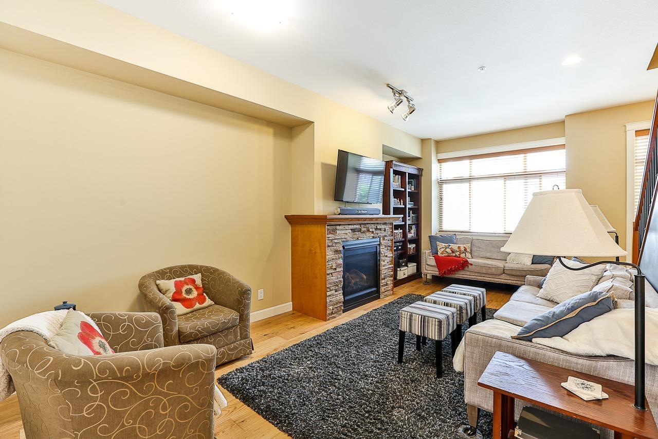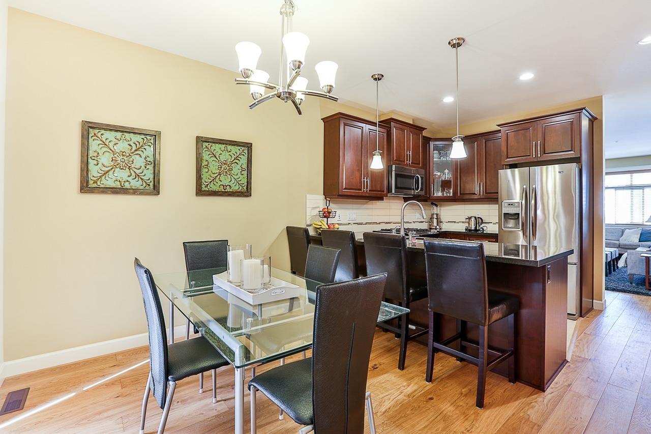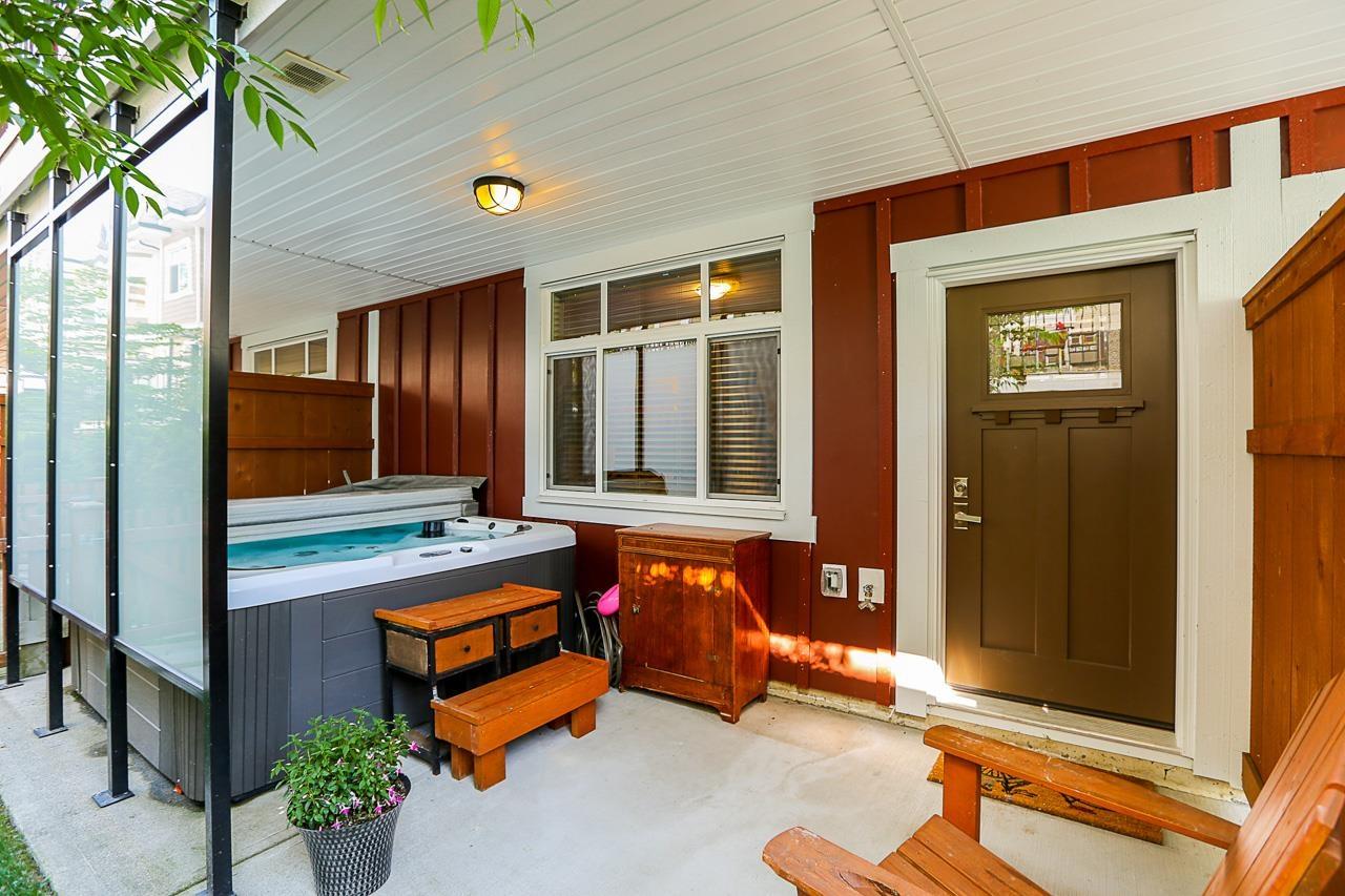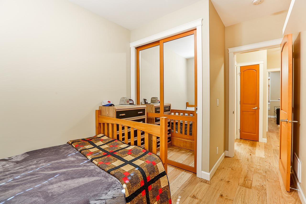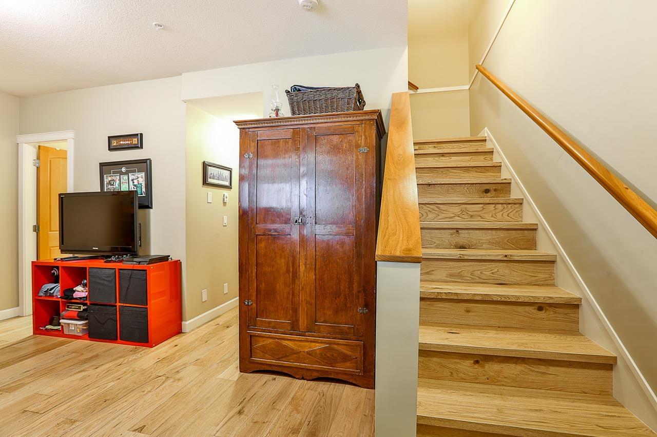 $330 MonthlyPrime quiet location across from the central park/playground in Yorkson Creek South. 3 bedrm + rec rm or 4 bedroom 4 bath home with full width 19' x 8'7 deck on main floor & 19' x 8'7 covered patio on ground floor w/hot tub & privacy screen! Brand new paint. 9' ceilings & 3/4" wide plank hardwood throughout all 3 floors including stairs in 2018! High quality finishing & cabinetry, granite counters, undermount sink, stainless appliances, gas stove & spacious pantry. Enjoy deluxe master suite w/air-conditioning, vaulted ceilings, ensuite w/heated tile floors & fog-free mirror! New washer, USB ports, high efficiency furnace & HW tank & gas BBQ hookup. Low strata fee! Outstanding! Vacant. Quick possession OK. (id:44393)