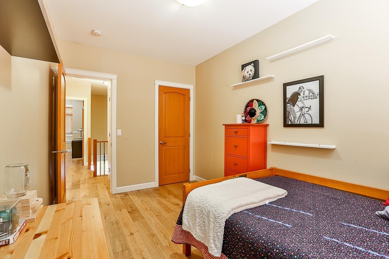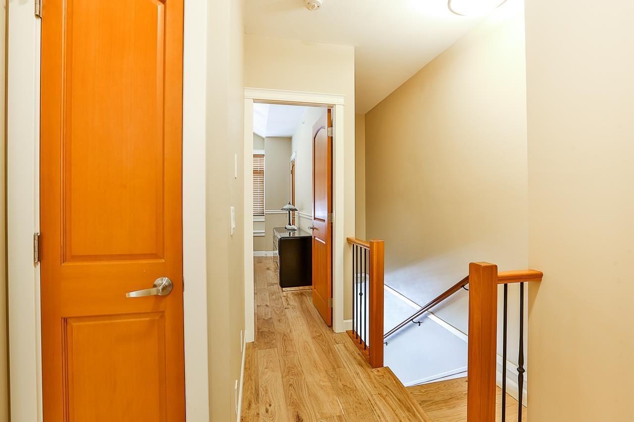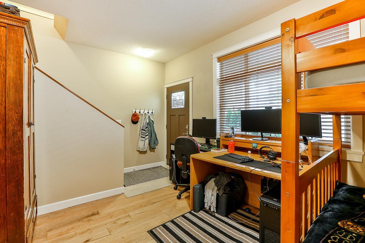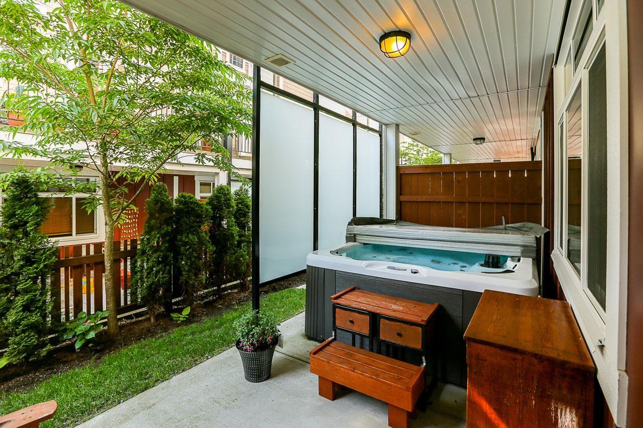 $330 MonthlyPrime quiet location across from the central park/playground in Yorkson Creek South. 3 bedrm + rec rm or 4 bedroom 4 bath home with full width 19' x 8'7 deck on main floor & 19' x 8'7 covered patio on ground floor w/hot tub & privacy screen! Brand new paint. 9' ceilings & 3/4" wide plank hardwood throughout all 3 floors including stairs in 2018! High quality finishing & cabinetry, granite counters, undermount sink, stainless appliances, gas stove & spacious pantry. Enjoy deluxe master suite w/air-conditioning, vaulted ceilings, ensuite w/heated tile floors & fog-free mirror! New washer, USB ports, high efficiency furnace & HW tank & gas BBQ hookup. Low strata fee! Outstanding! Vacant. Quick possession OK. (id:44393)