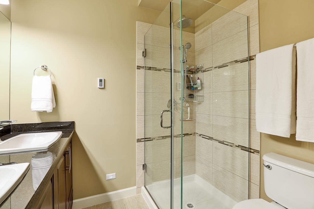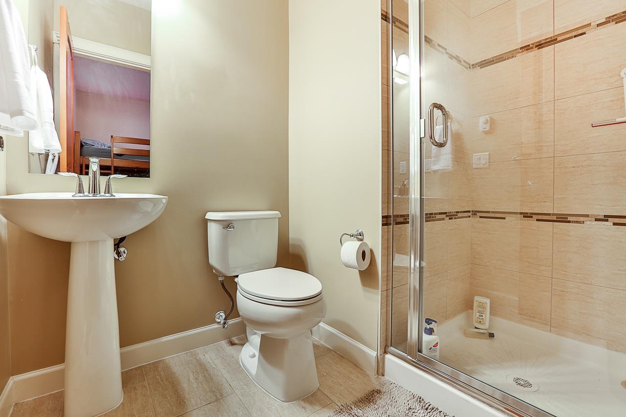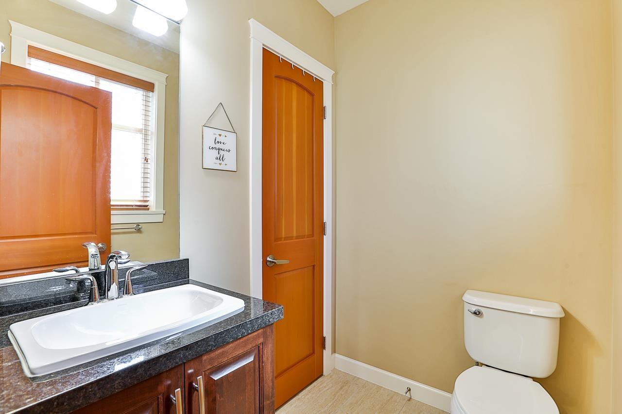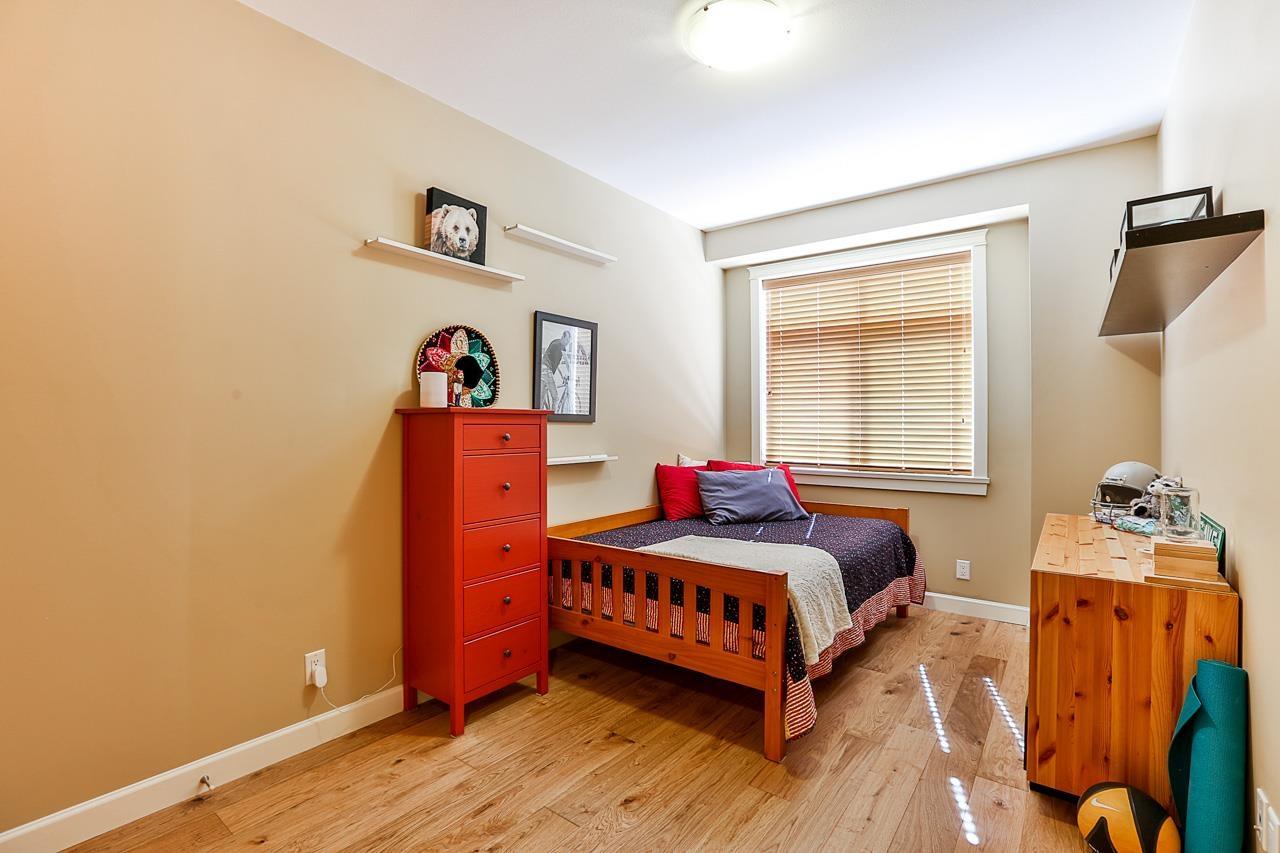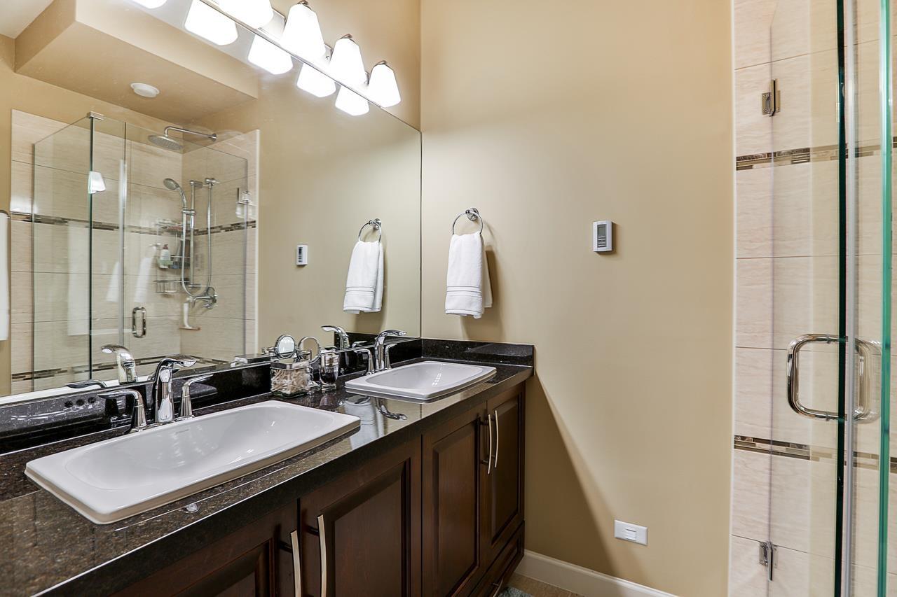 $330 MonthlyPrime quiet location across from the central park/playground in Yorkson Creek South. 3 bedrm + rec rm or 4 bedroom 4 bath home with full width 19' x 8'7 deck on main floor & 19' x 8'7 covered patio on ground floor w/hot tub & privacy screen! Brand new paint. 9' ceilings & 3/4" wide plank hardwood throughout all 3 floors including stairs in 2018! High quality finishing & cabinetry, granite counters, undermount sink, stainless appliances, gas stove & spacious pantry. Enjoy deluxe master suite w/air-conditioning, vaulted ceilings, ensuite w/heated tile floors & fog-free mirror! New washer, USB ports, high efficiency furnace & HW tank & gas BBQ hookup. Low strata fee! Outstanding! Vacant. Quick possession OK. (id:44393)