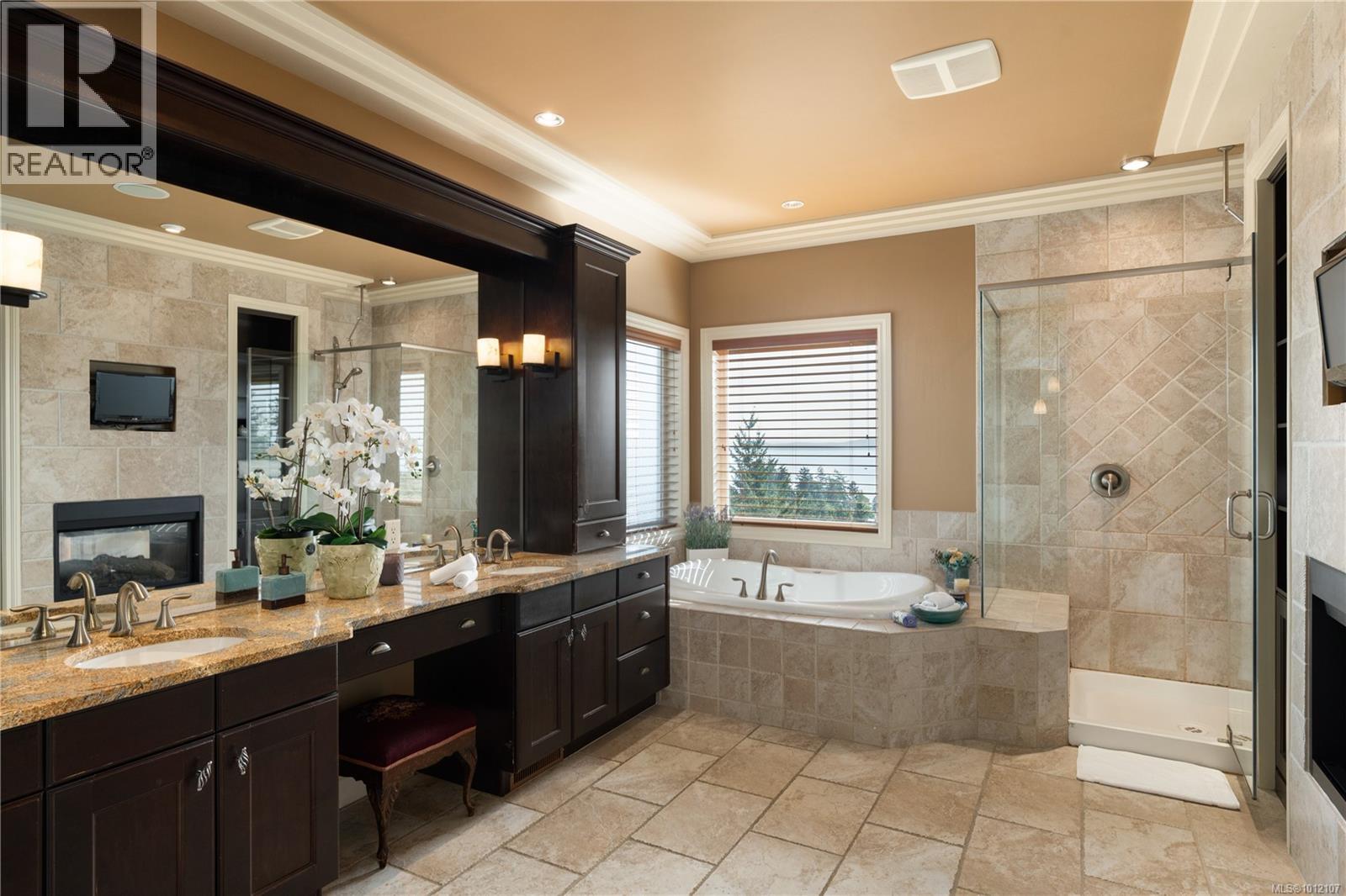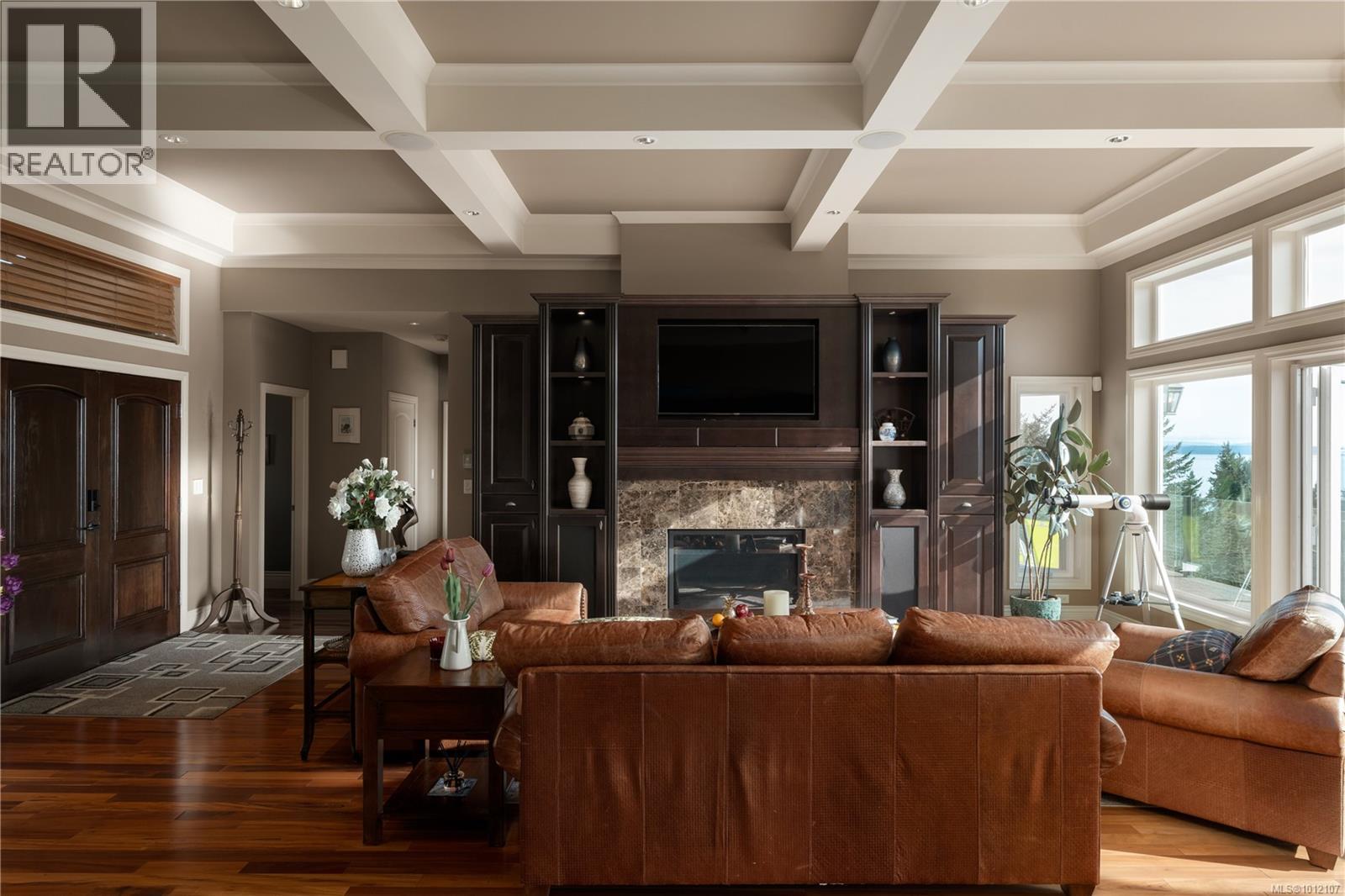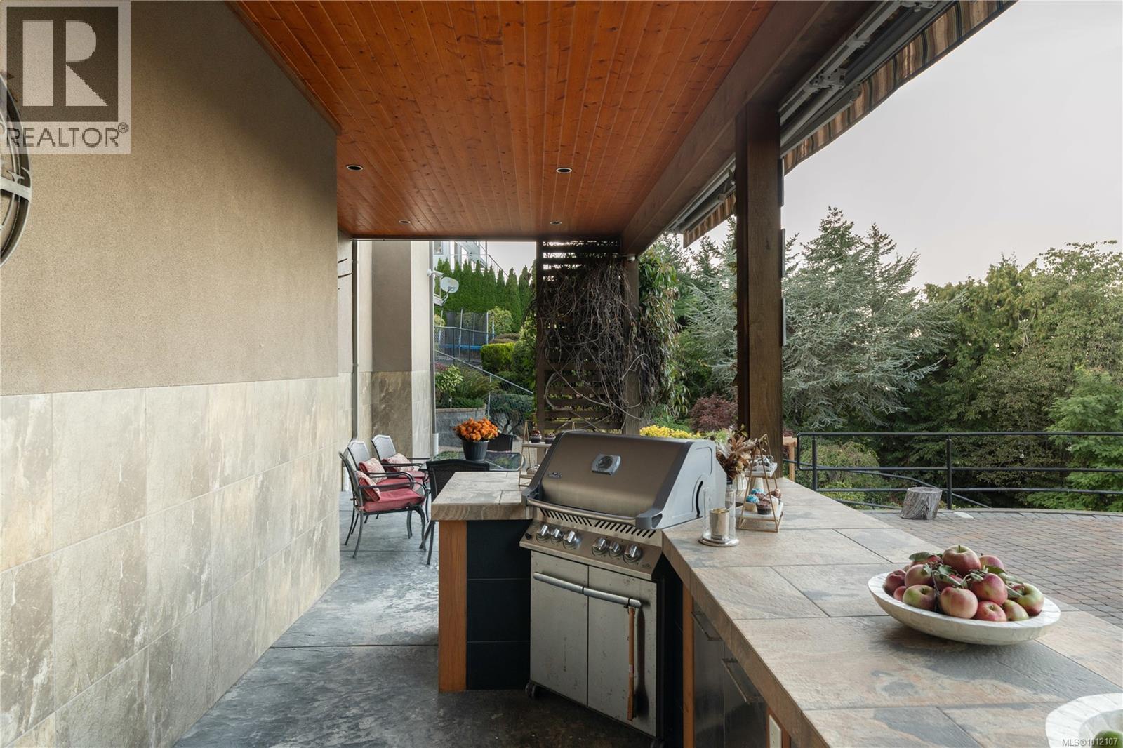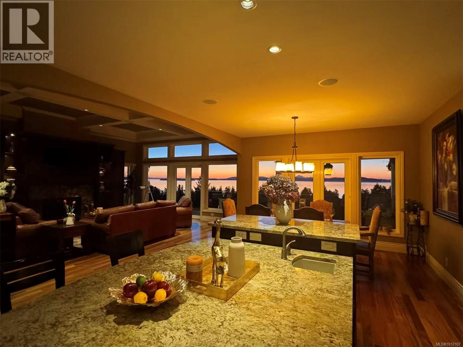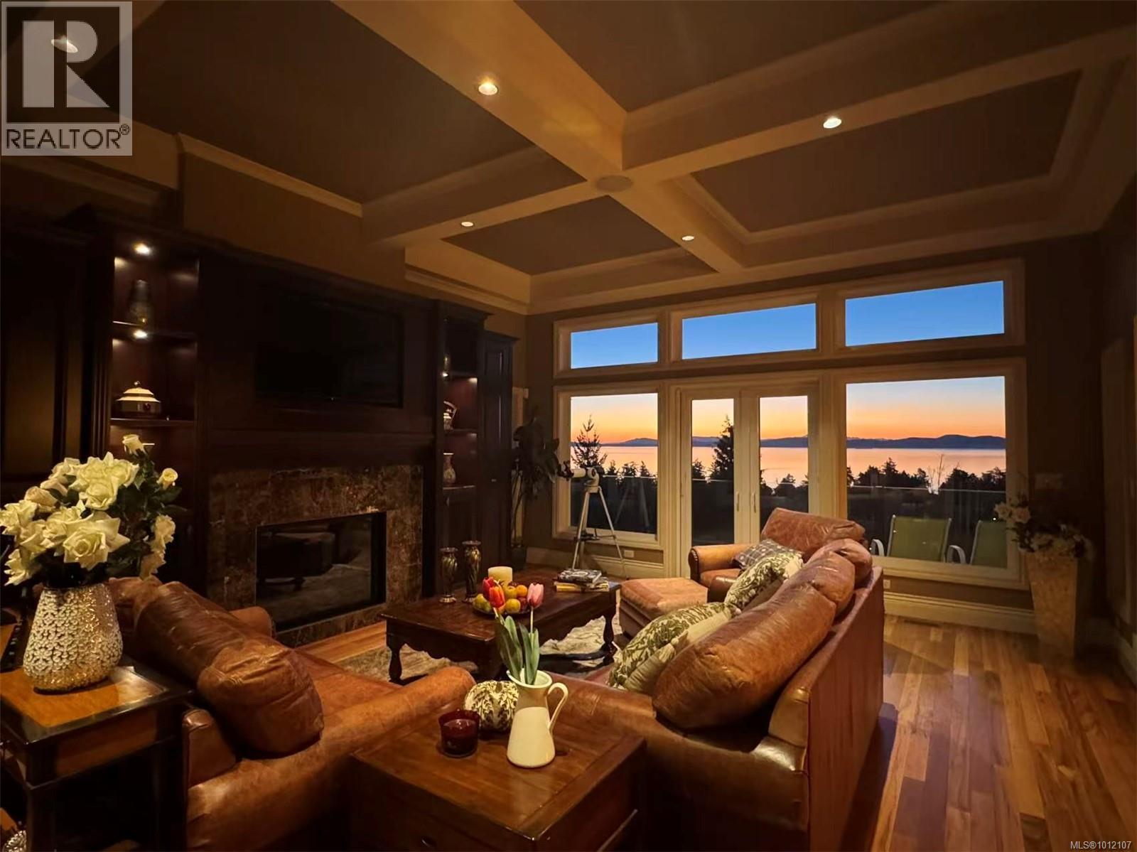 ONLY FOR SALE UNTIL OCT. 31st. 970 Seapearl is a custom 2008 luxury residence marrying architectural elegance, structural integrity, and West Coast nature. Over 4,000 sq ft, 4 beds/5 baths, cherrywood floors and 12' ceilings frame ocean-to-mountain panoramas: Haro Strait, Mt. Baker, Cordova Bay, Mt. Douglas, and the Olympics. Outdoor living tops 1,000 sq ft across dual decks with hot tub, plus a below-deck garden with a gentle river, pond, stone backdrop, and statue. The courtyard is four-season—outdoor kitchen, gas BBQ, wall fountain, irrigation, and dramatic lighting—backed by a whole-home generator. Inside: three fireplaces and a chef’s kitchen with a 9' granite island, gas cooktop, and double wall ovens; tunable lighting and pre-wiring for smart upgrades. The primary suite offers a view sitting area, dressing room, and spa ensuite. Minutes to beaches, trails, golf, and top schools on a quiet, non-through street of just 15 homes—this is a serene, engineered sanctuary. (id:44393)