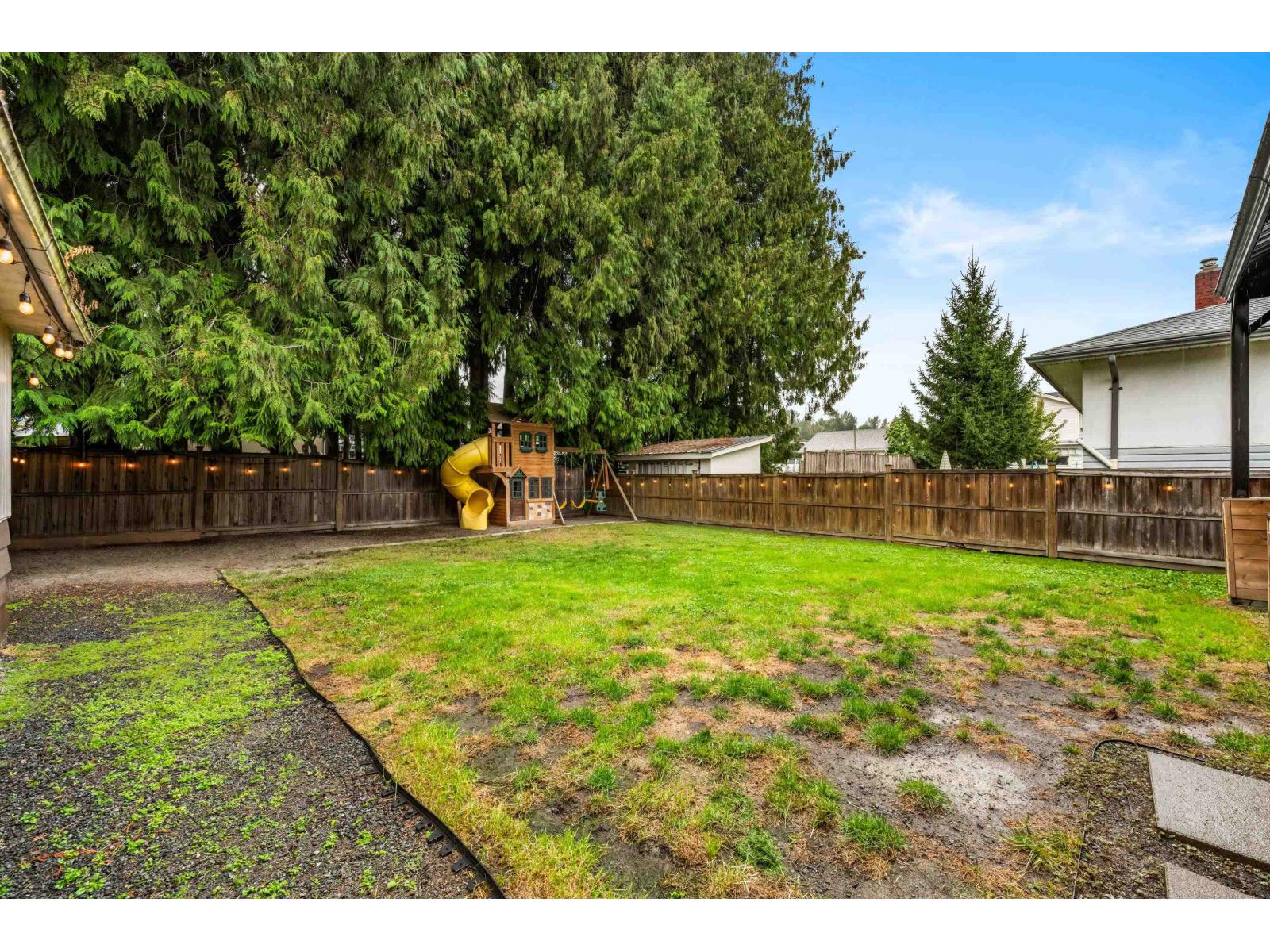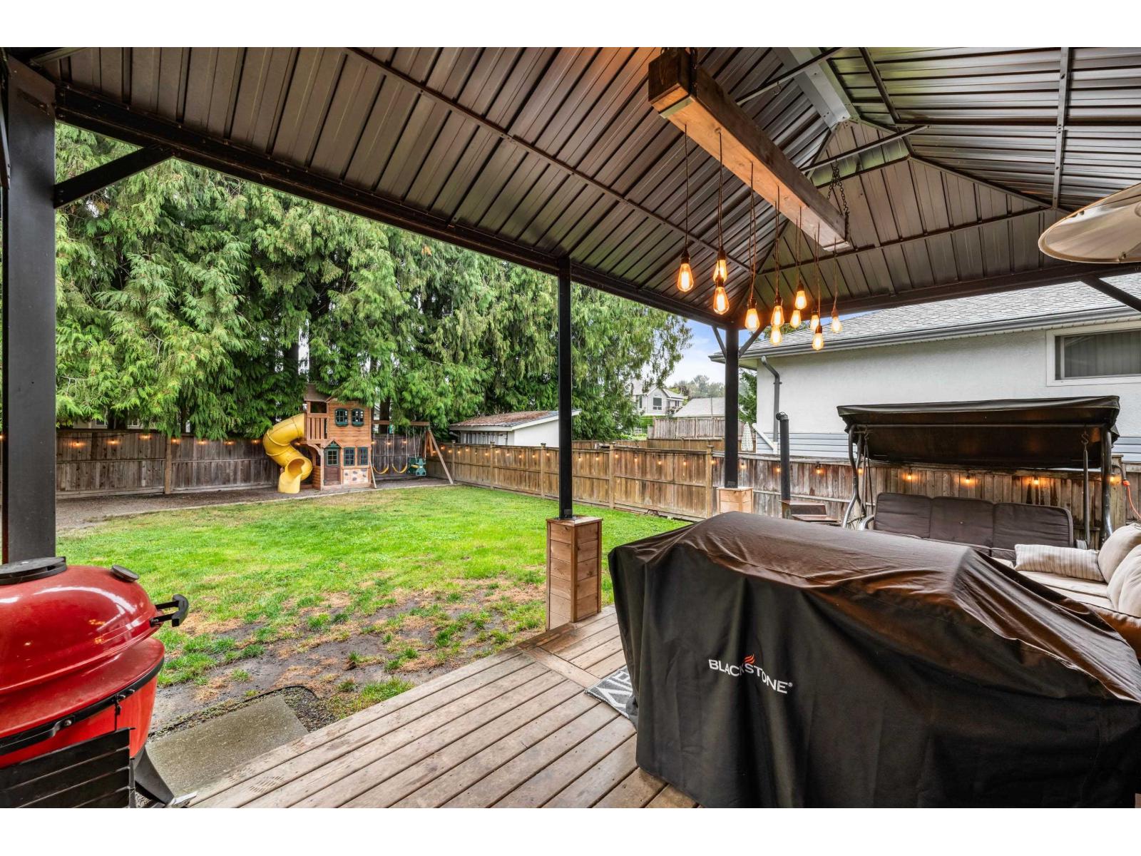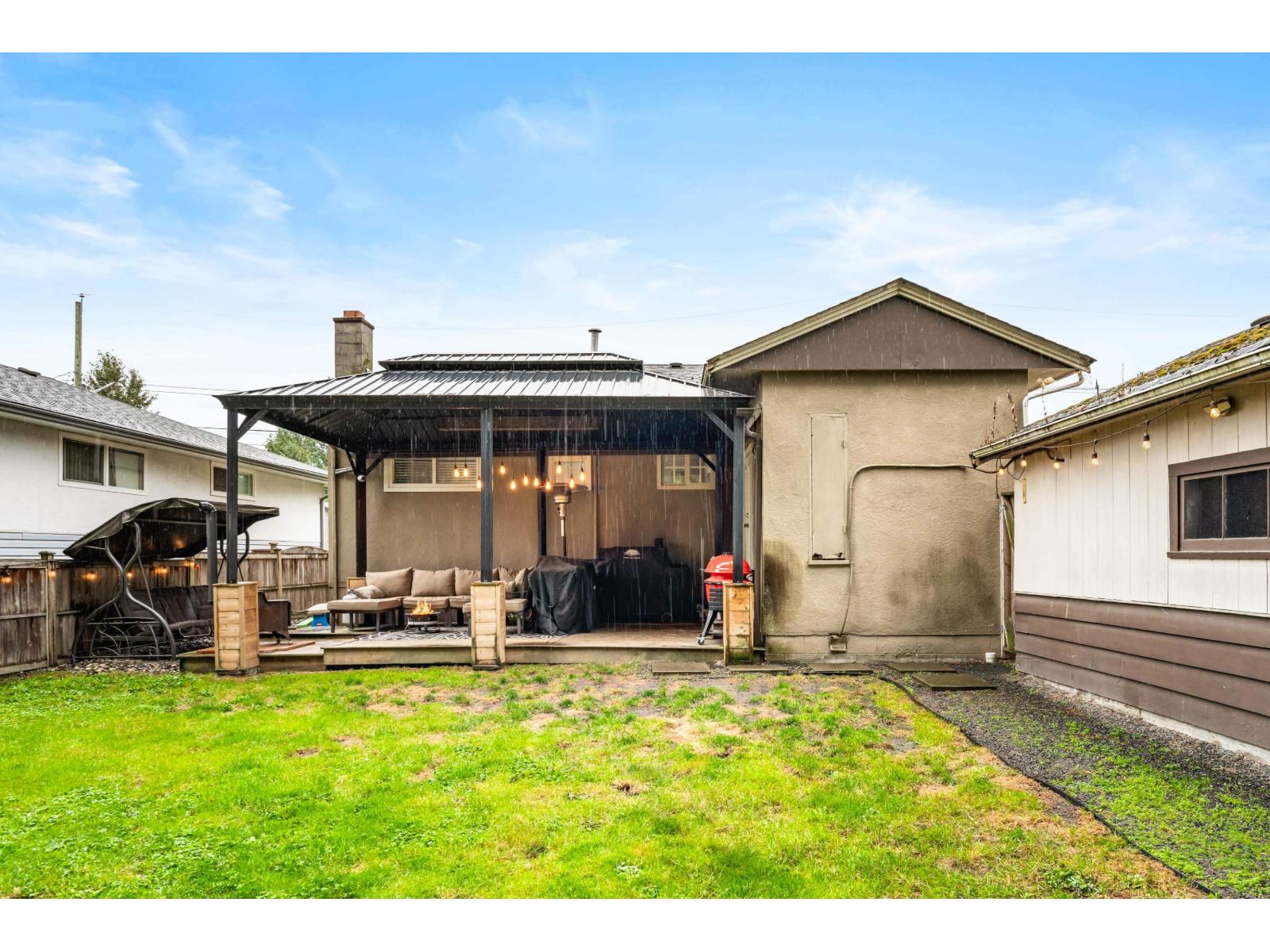 Perfect for first-time buyers & young families! This charming move-in ready home sits on a quiet, family-friendly cul-de-sac just mins from vibrant Downtown Chilliwack. The large lot features fresh landscaping, new fencing, a patio, gazebo & playset, w/ mature trees for privacy & curb appeal galore. Inside, the bright main floor offers a spacious living room, open dining area & refreshed white kitchen w/ subway tile & ample cabinetry. Two generous bedrooms & a fully updated 4-pc bath complete the level. Extensive professional upgrades include new pot lighting, fixtures, appliances, hot water tank, AC, bathroom vanities, finished basement & even an integrated air purifier. Detached garage adds storage, workshop, or parking flexibility. A stylish starter home w/ all the big updates done! (id:44393)