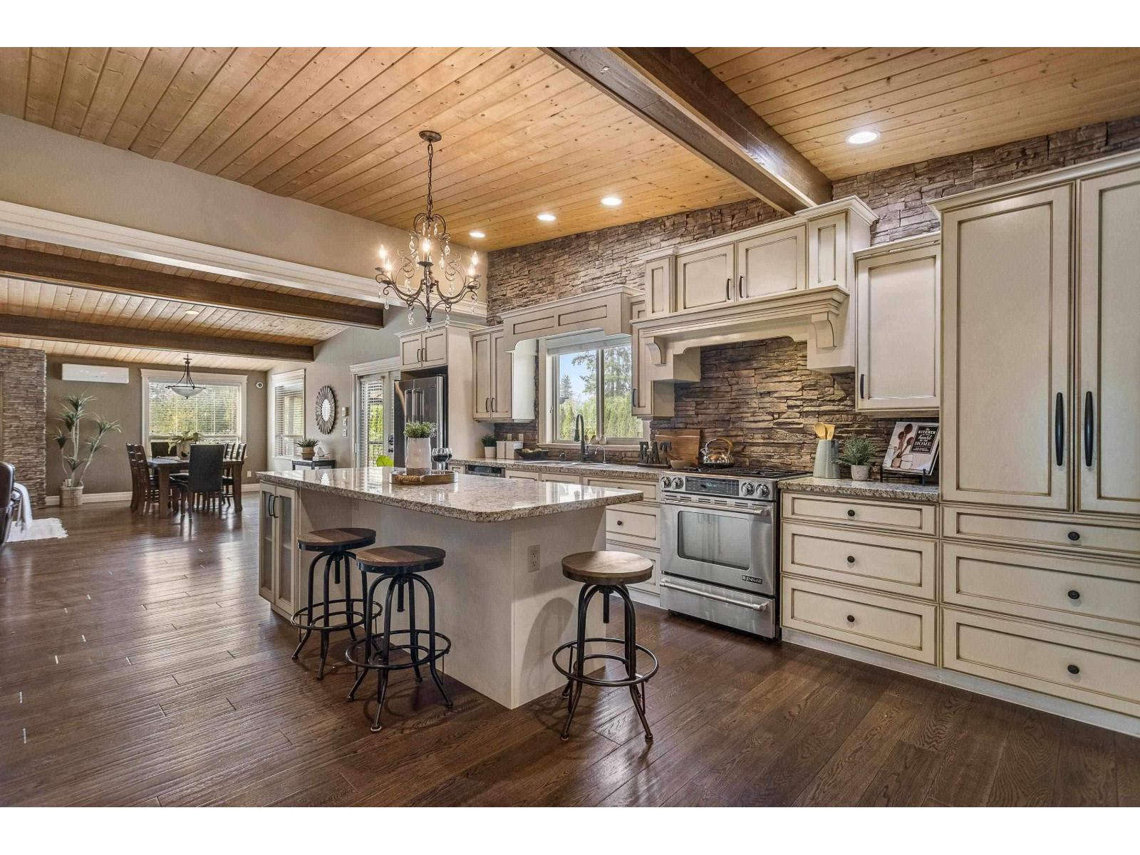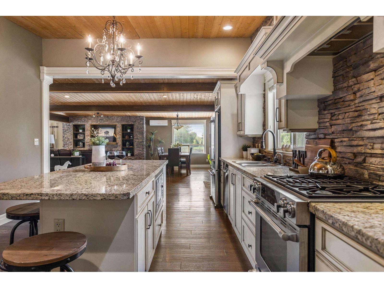 1.11 Acres in Walnut Grove - rare private fenced parcel w/ electric gate. 2 Story 3,008 SQ/FT home w/ vaulted pine ceilings, rustic hardwood, floor-to-ceiling stone fireplace, open layout. Gorgeous kitchen w/ antique white cabinetry, travertine backsplash, granite counters, large island & Jenn Air appliances. Large master with walk-in. Fully finished basement: 3 beds, laundry, media room, separate entry ideal for suite. Ductless split heat/cool. Deck, above-ground pool, 60x120 arena now parking. RU1 in ALR allows secondary home (size limit) & shop. PRIME LOCATION: 4 mins to Fort Langley, mins to parks, amenities, schools, Hwy 1 (200 & 216). Situated on the quiet section of 216 Street, yet minutes too all amenities. CITY WATER & out of floodplain based T.O.L maps. Buyer to confirm all info (id:44393)