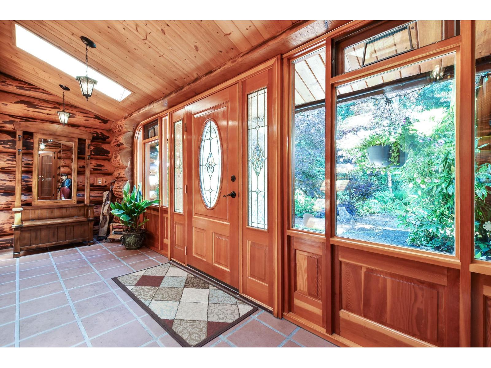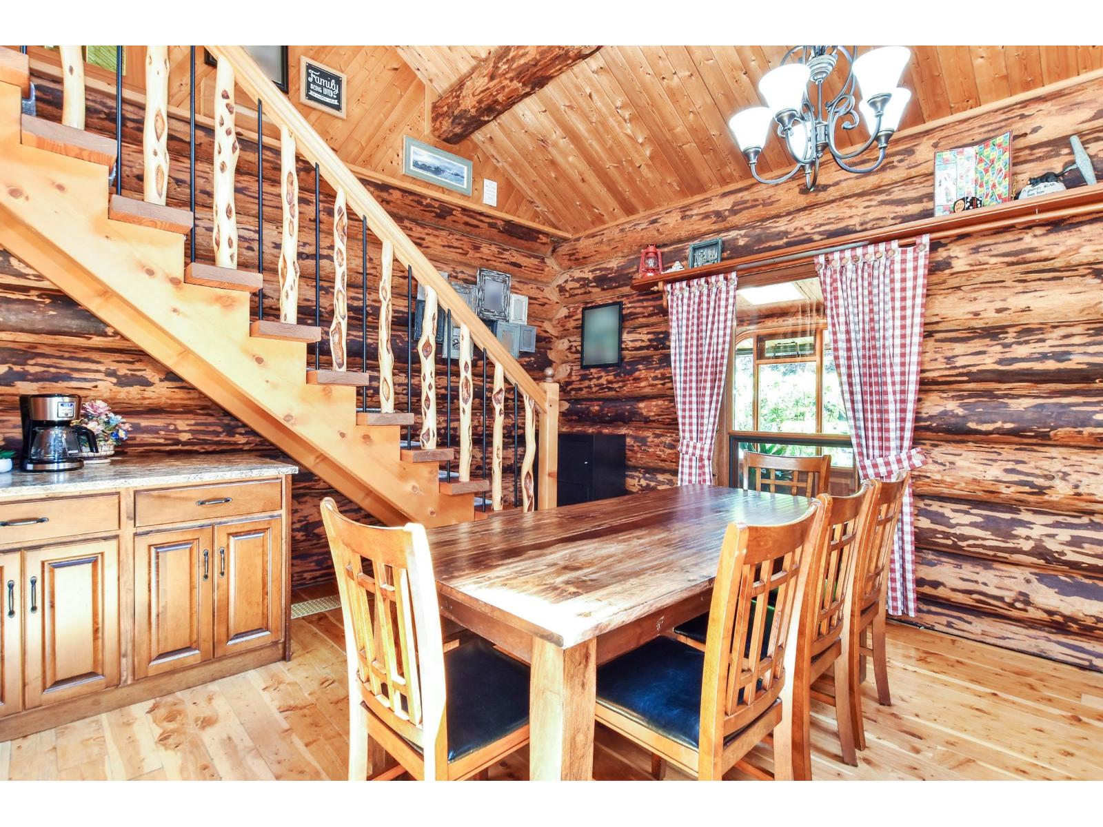 Tucked away at the end of a quiet street, this custom, spruce log home sits on 2.3 acres. Surrounded by nature, this one-of-a-kind property offers the ultimate escape, yet only 10 minutes from Downtown Mission! Whether you love to entertain or simply unwind in peace, this home has it all: sprawling decks and patios, lush gardens, an in-ground pool, your own orchard, and even a charming chicken coop. Explore the creek, play in the open yard, or host unforgettable gatherings in this truly magical setting. Step inside and be captivated by the warmth and character throughout. The rock fireplace anchors the cozy family room, a perfect spot to curl up with a book or gather with friends. The open living and dining spaces flow seamlessly into a beautifully renovated kitchen, while a Hemlock-railed staircase leads to a versatile loft space - ideal for a bedroom, rec room, or creative studio. Add in a flex room and you've got endless possibilities for work, play, or guests. This is more than a home, its a lifestyle. (id:44393)