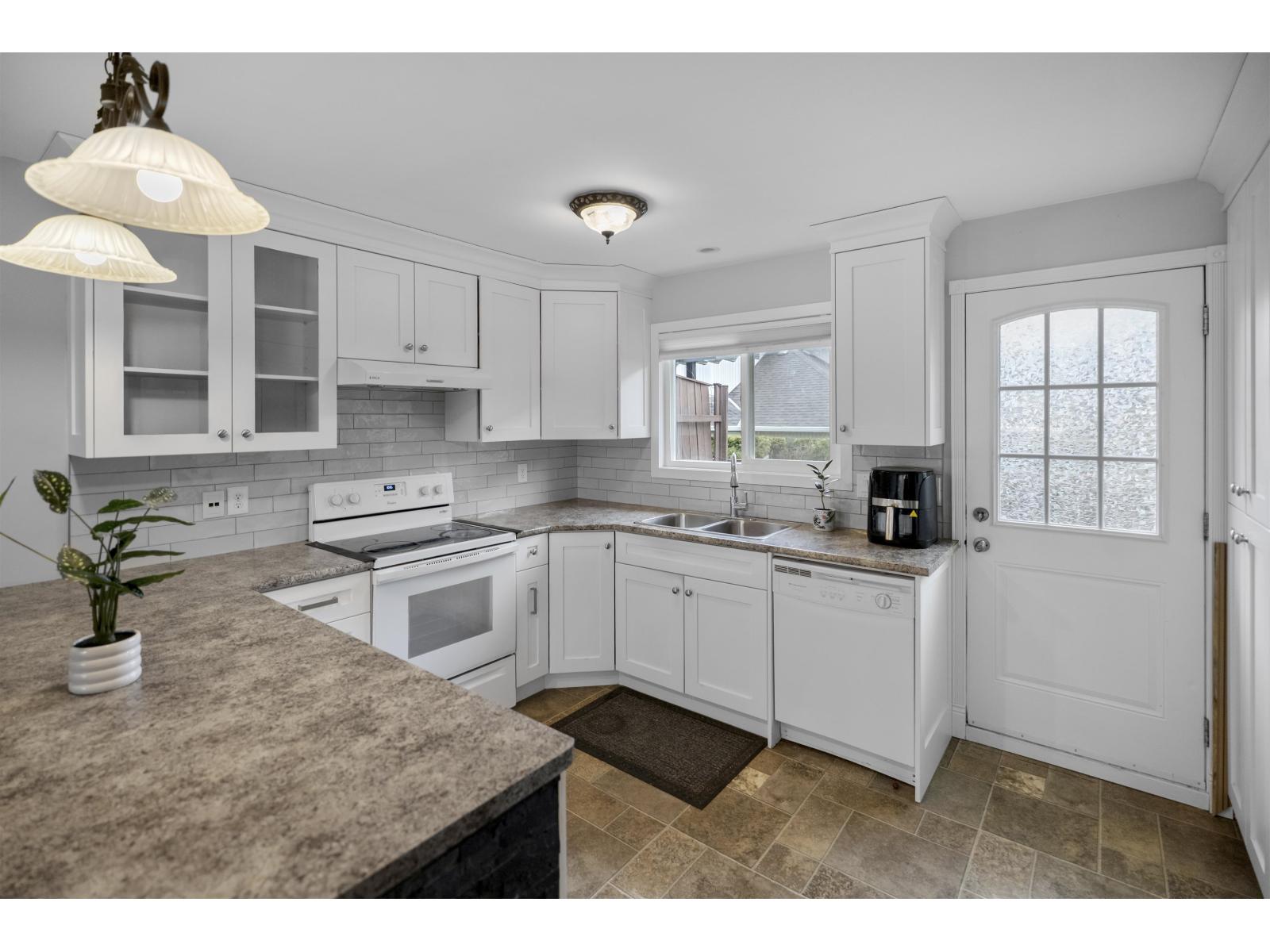MOVE-IN READY & BEAUTIFULLY UPDATED! Over 2,000 SQFT, 4 bedrooms 3 Bath, and a quiet no-thru street! Stunning kitchen (updated 2017) with soft-close white cabinetry, 2 pantries, quartz counters, tiled backsplash & updated appliances. Whole house painted 2025, new main flooring 2023, lighting 2017, HE furnace + A/C, 60 US gal HWT (2023), double-glazed vinyl windows. Enjoy peek-a-boo mountain views from the deck with natural-gas BBQ hook-up. Private backyard fits trampoline, garden or play set, plus fenced dog run. Ample Parking spaces + room for small RV. Quiet neighborhood within walking distance to park, specifically 300 meters. No monthly strata fees or restrictions "- homes rarely come up for sale in this sought-after area! (id:44393)