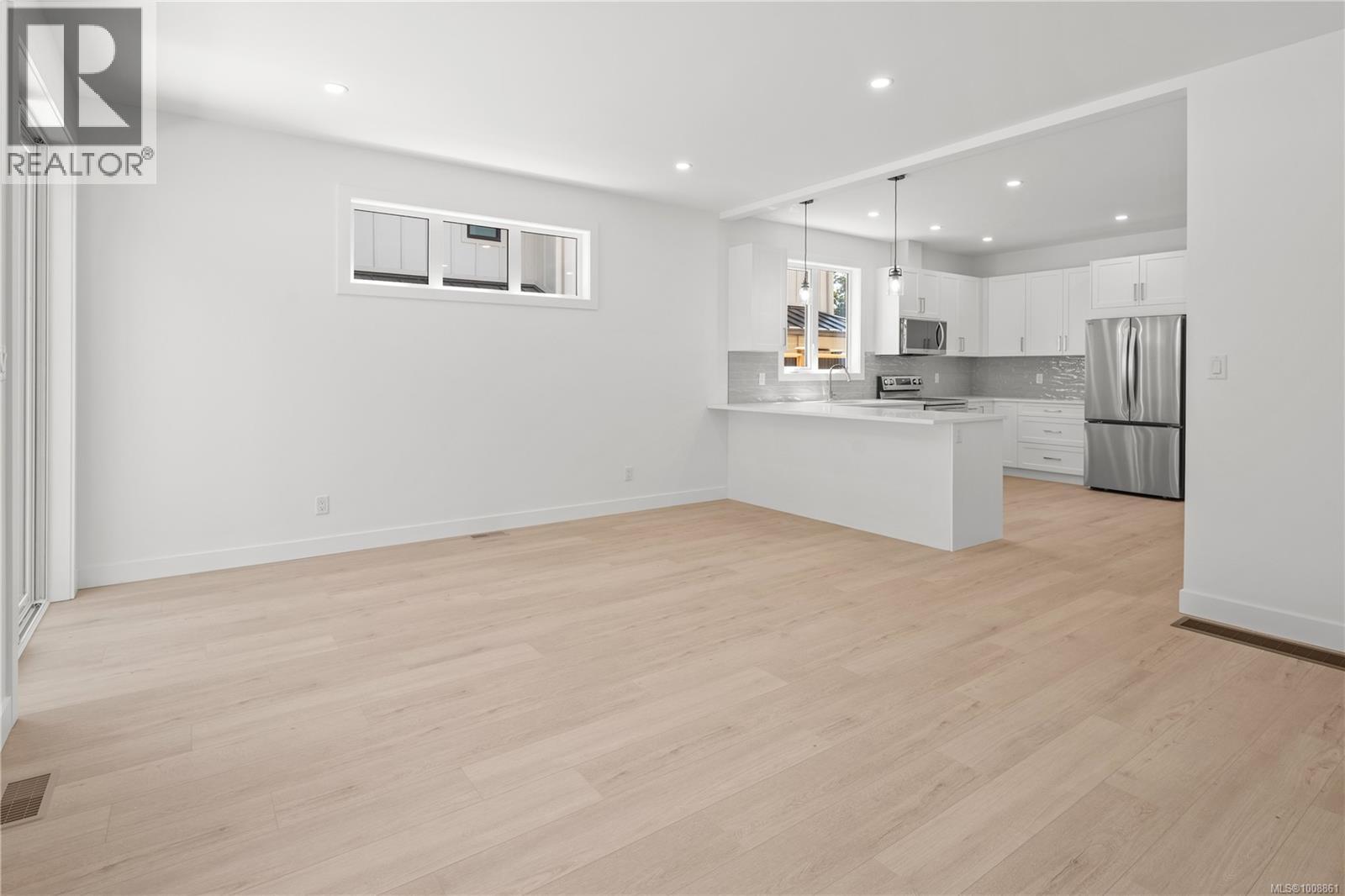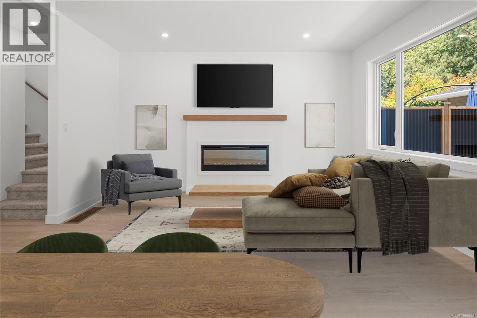 Centrally located in the popular Glanford neighbourhood, this 4-bed, 2-bath half duplex offers space, comfort, and efficiency. Upstairs you’ll find all bedrooms plus convenient laundry. Downstairs, the bright main level features a large U-shaped kitchen with stainless steel appliances and an eating peninsula—perfect for family life and casual entertaining. Laminate flooring flows throughout, and year-round comfort is handled by a high-efficiency heat pump with separate zones for each floor. Hot water is provided by a modern heat pump tank. A single-car EV ready garage, built-in vacuum, and a handy 3’ crawlspace for storage round out the home. Quality-built by a local builder with decades of experience building in Greater Victoria. A smart choice in a family-friendly neighbourhood close to parks, schools, and every amenity. Move-in ready and low-maintenance, this is an ideal home for growing families or anyone seeking unbeatable value in a central location. (id:44393)