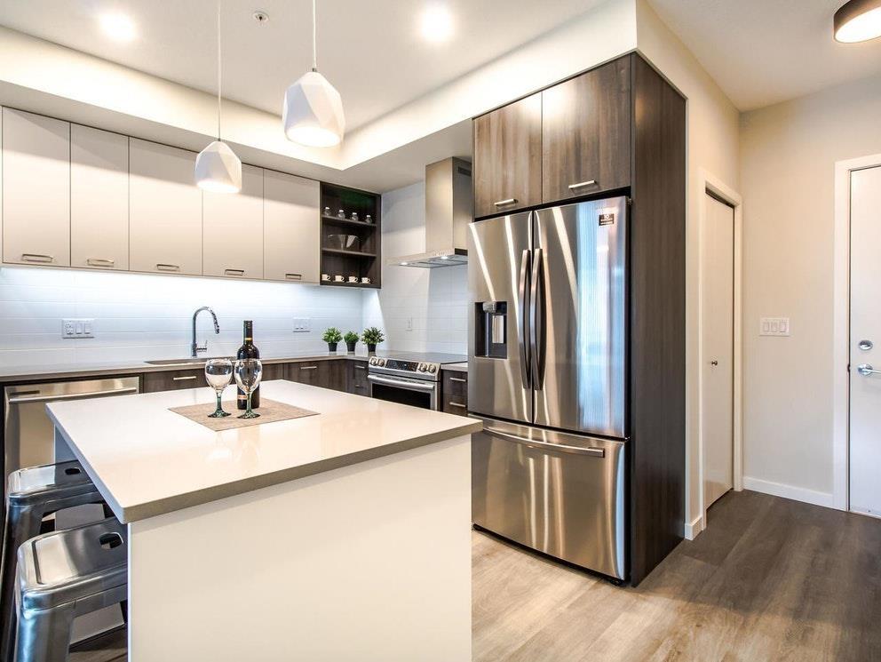 $265.82 MonthlyWelcome to Park Hill in Willoughby Heights! This bright and quiet 1-bedroom, 1-bath home offers 695 sq. ft. of open-concept living facing East and next to a peaceful greenbelt. Enjoy a spacious kitchen with quartz counter, plenty of built-in storage, modern vinyl flooring, and a large bedroom with walk-in closet. The ensuite bathroom features double sinks and a full size tub. Perfect for first-time buyers, downsizers, or investors seeking a modern, move-in ready home in a quiet location. Includes 1 parking stall. Open House: Sat/Sun Nov 8 & 9 2-4PM. (id:44393)