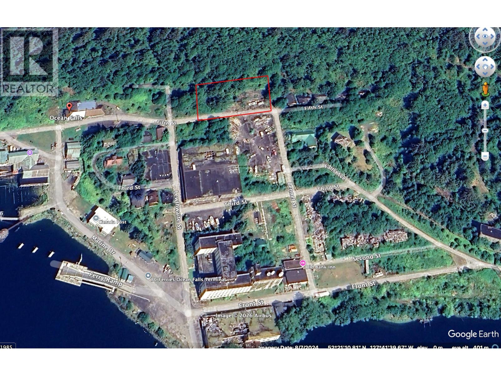 0.83-acre bare lot in the Ocean Falls townsite with road access directly from the ferry terminal. Services are available at the lot line through the Ocean Falls Improvement District. There is no zoning in the area, offering excellent flexibility for development. The property is currently overgrown but could be easily cleared and ready for a summer home, recreational retreat, or remote family residence with potential ocean views. Ocean Falls is renowned for outstanding fishing, including salmon, halibut, prawns, and crab right out front, with countless sheltered inlets and rivers nearby. A rare opportunity to build in a historic coastal community surrounded by pristine wilderness. (id:44393)