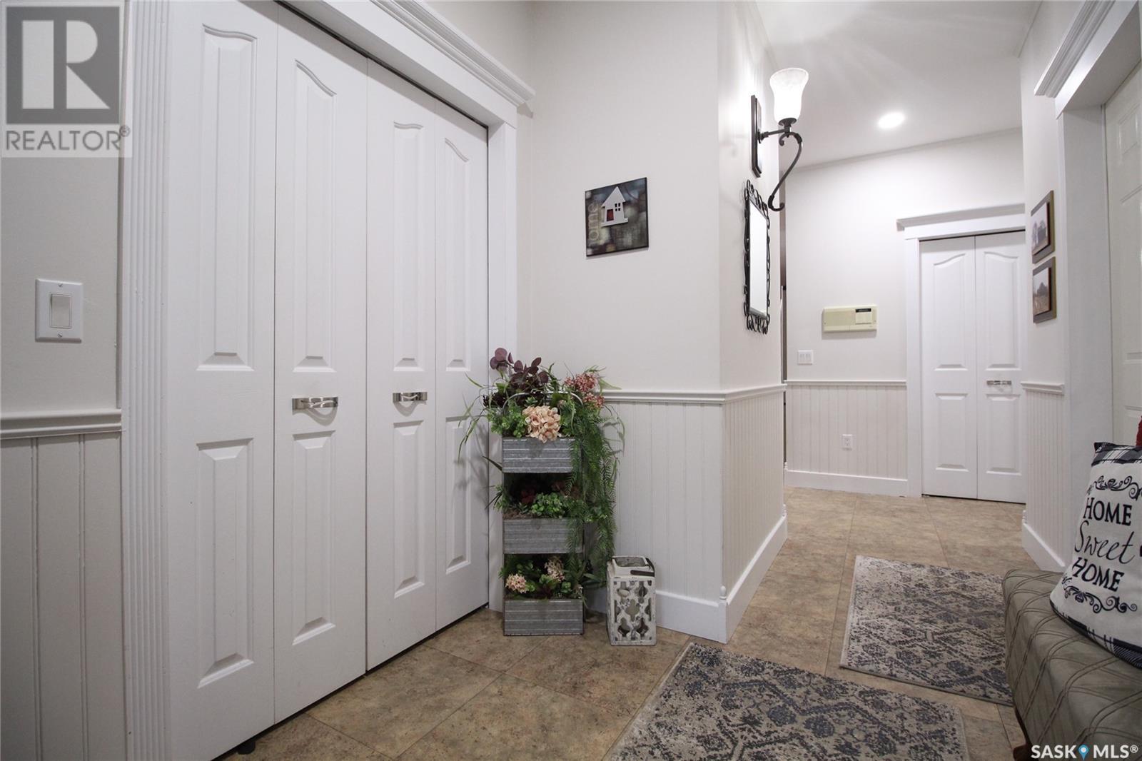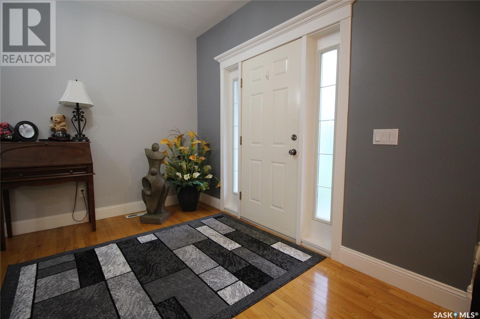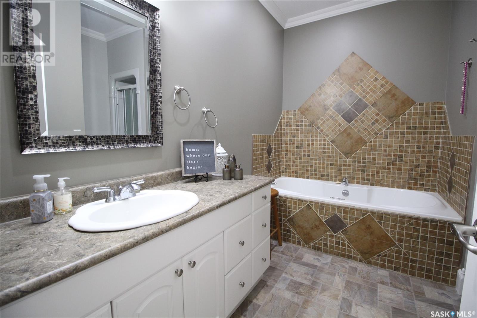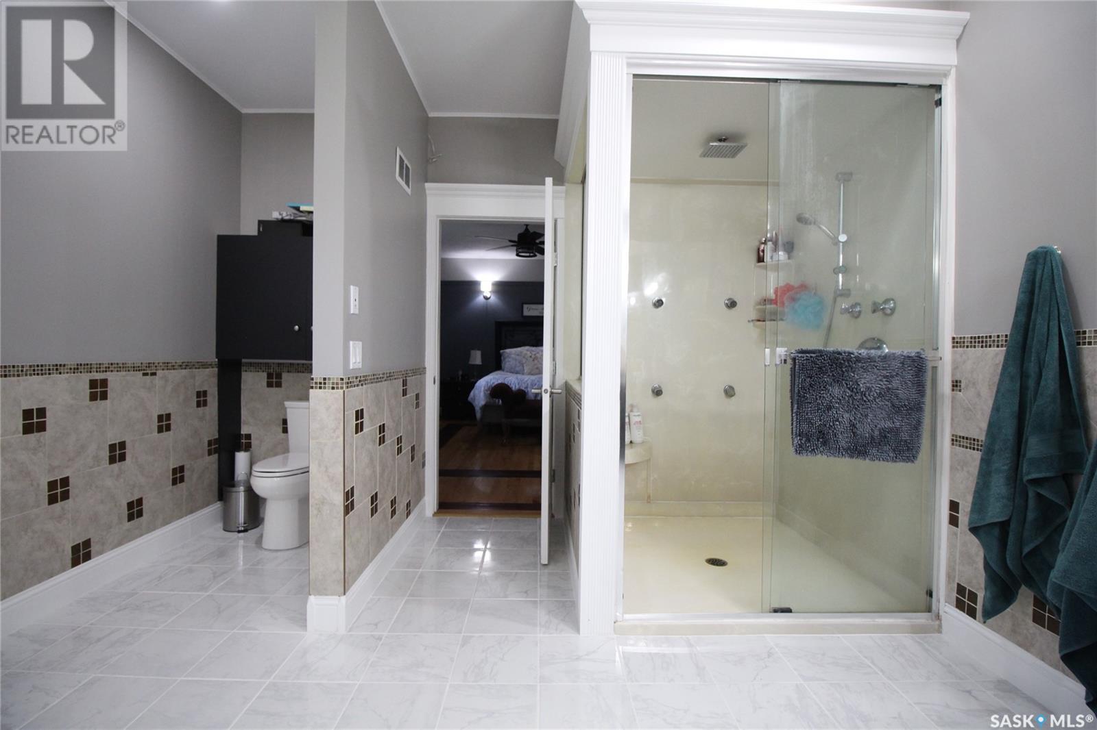 This remarkable property has it all including a location that's perfect; less than 1 km outside of Moosomin! As you pull up to this private oasis you’re greeted by a 3978 sqft home w/double attached garage and a detached garage/shop all of which is surrounded by mature trees and shrubs and located on 3.95 acres. You'll find a large entrance, w/lots of closet space, that leads into the beautiful and bright kitchen! The kitchen features immaculate oak cabinetry, lots of cupboard/counter space, a large pantry, island w/prep sink, and 2 built in ovens. In this well-kept home, you get 2 beautiful dining rooms; one situated off of the kitchen w/access onto the deck and one close to the front entrance w/a more formal vibe. Off of the entrance you’ll also find a 2pc bathroom and an incredible laundry/mud room that every parent dreams of! The spacious living room is a comfortable setting w/the gas fireplace as the focal point and access into the hot tub room. With french doors leading to the deck, this private area is so peaceful and great for entertaining! Vaulted ceilings with the abundance of windows makes this space feel huge! Down the hall you’ll find the huge master bedroom featuring his/her closets and a 5pc ensuite w/new tile flooring and a large corner jet tub, 2 additional bedrooms, 3pc bathroom, and a large office. The basement boasts a huge rec room/family room w/ pool table, 2 additional bedrooms, a 3pc bathroom, and utility room which offers lots of storage space! BONUSES INCLUDE: 2 natural gas furnaces, on demand water heater, RO system, air exchanger, central vac, sump pump, water softener, intercom, 220 hook up, and RF now. You’ll also find heated floor in the basement, hot tub room, and garage! The detached garage/shop is heated with an electric furnace and has a toy area and workshop. And let’s not forget about the yard… this yard is absolutely perfect! Full of mature tress including apple, plum, and cherry trees! Call today to view this property! (id:44393)