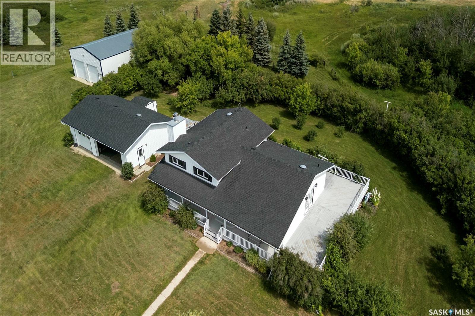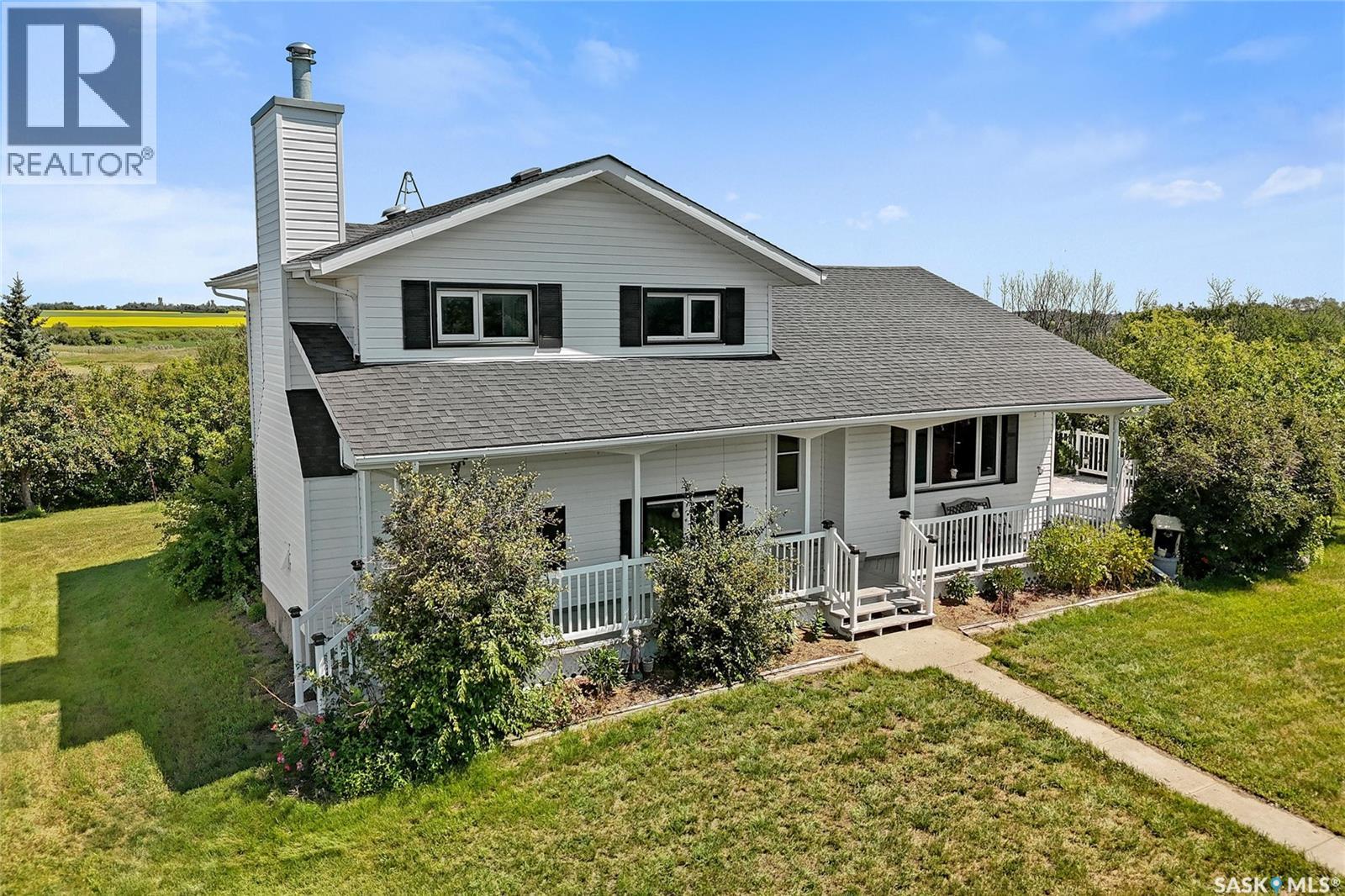 Seller says sell! Try an offer! Quick possession! Freedom from commotion and the bustle of the city with nothing but open skies and peaceful living. Located approximately 40 kms from Regina sits 80 acres (40 cultivated acres) of green gently rolling hills and tranquil surroundings. Winding around the row of trees the house comes into view and you will immediately feel like you’re in a different world. Pride of ownership shines through in every corner of the house and land. Imagine Saskatchewan sunsets or getting lost in a book from your wraparound deck. Behind the house are fruit trees and even some almond trees with a fire pit off to the side. The yard site has a 36’ x 24’ garage, 29’ x 49’ shop (10’ doors) and a little further in behind is a 25’ x 48’ barn with 2 stalls. Fenced corals and pastures are ready for new animals. 40 acres of cultivated land. 2 sloughs. The house is so loved and very well maintained. Built with 2x6 construction. Living room at the front of the house with the eat-in kitchen, dining room and main floor laundry at the back. Located at the back door is a powder room which is perfect for coming in from the garden and cleaning up without bringing the mess through the house. Upper level has 3 good sized bedrooms, 4-piece bathroom with the primary bedroom having a 3-piece en-suite. 3rd level has a huge family room with a wood burning fireplace, 4th bedroom and a 2-piece bathroom. Lower level is open for development which could be a children's play area or family games room. Meticulously maintained and cared for over the years. Easy access from the highway but surrounded by trees makes you feel like you’re all alone. Well on property with water treatment system included. Lagoon. School bus to Vibank approx 13kms. K-12. Directions: Highway 48 about 20 minutes south of White City. Just East of Davin on opposite side of highway. Farm is across the road from large cross on hill. (id:44393)