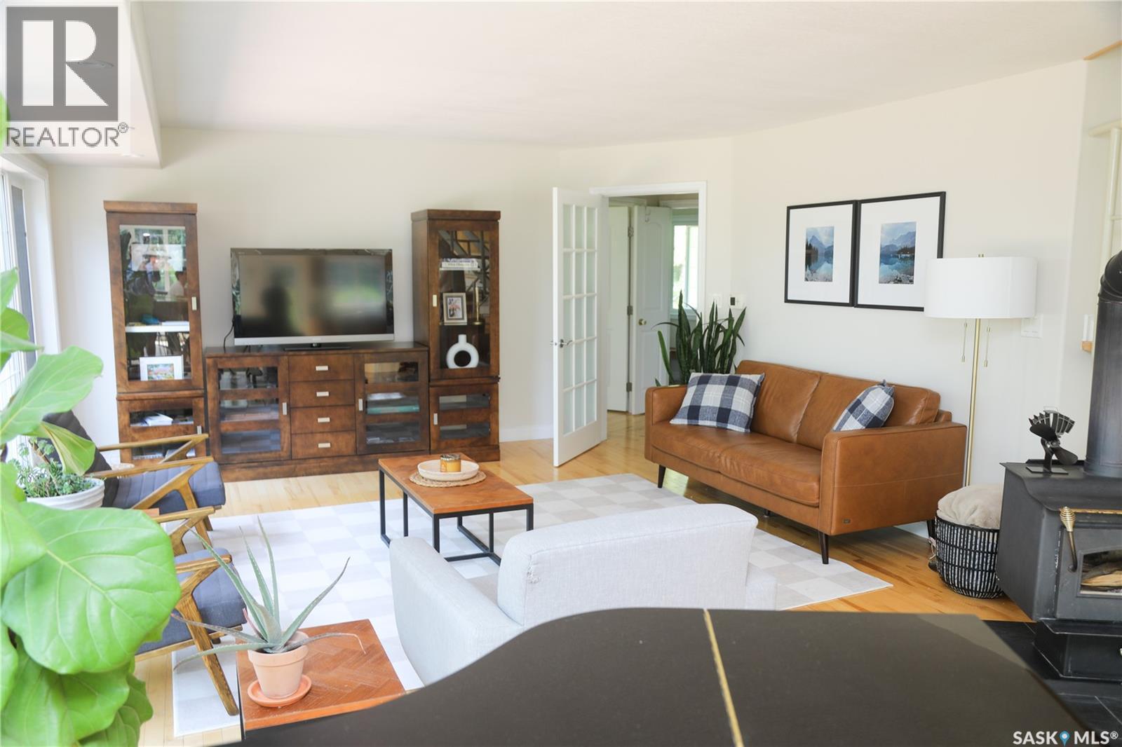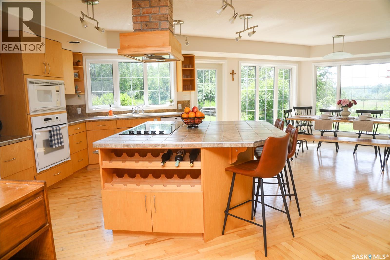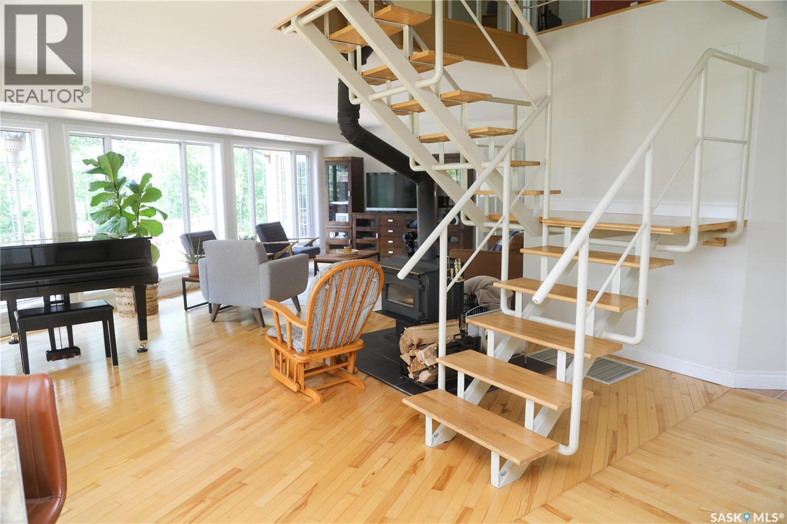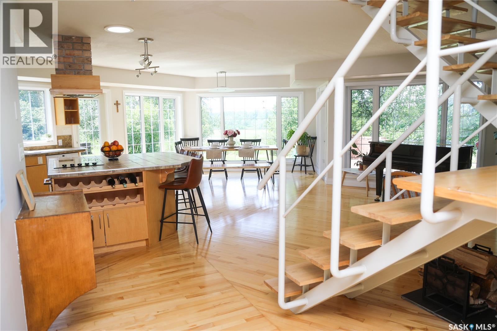 Stunning Riverfront Acreage – RM of St. Louis. Experience the perfect blend of luxury and nature on this 17-acre riverfront property along the South Saskatchewan River, just south of the St. Laurent ferry. This exceptional 1.5-storey home is designed to take full advantage of its picturesque surroundings, with large windows offering panoramic river views. The spacious, open-concept main floor features hardwood flooring, a cozy wood-burning stove, and a kitchen with built-in appliances, a large island with a cooktop, and a walk-in pantry. The adjoining dining and living areas flow effortlessly onto a generous patio—ideal for entertaining or unwinding. The main floor also includes a luxurious primary bedroom with a 5-piece ensuite and walk-in closet. It also has a 2-piece guest bathroom, a laundry room, storage room and a mudroom—all connected to an insulated two-car garage. Upstairs, an open staircase leads to a bonus room, two more bedrooms, an office, and a 4-piece bathroom. The home is heated by a geothermal system, with utilities located in the crawlspace. The property offers complete privacy with mature trees, walking trails to the river, and a firepit area. Additional features include an orchard with Sea buckthorn , garden space and various fruit trees. PLUS a second home, a recently renovated 2-bedroom bungalow with a new deck. For hobbyists and storage, there’s a massive 40' x 80' metal-clad shop with a concrete floor, plus a 25' x 35' cold storage shed. Peaceful, private, and rich with opportunity, it’s a place where you can enjoy all that Saskatchewan’s four seasons have to offer. Call today! (id:44393)