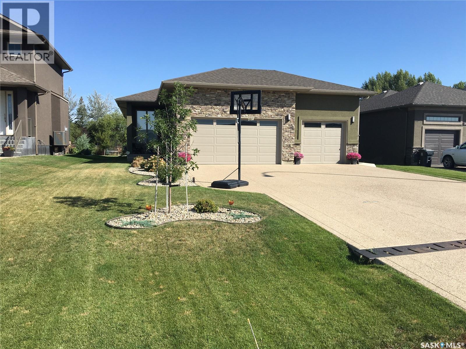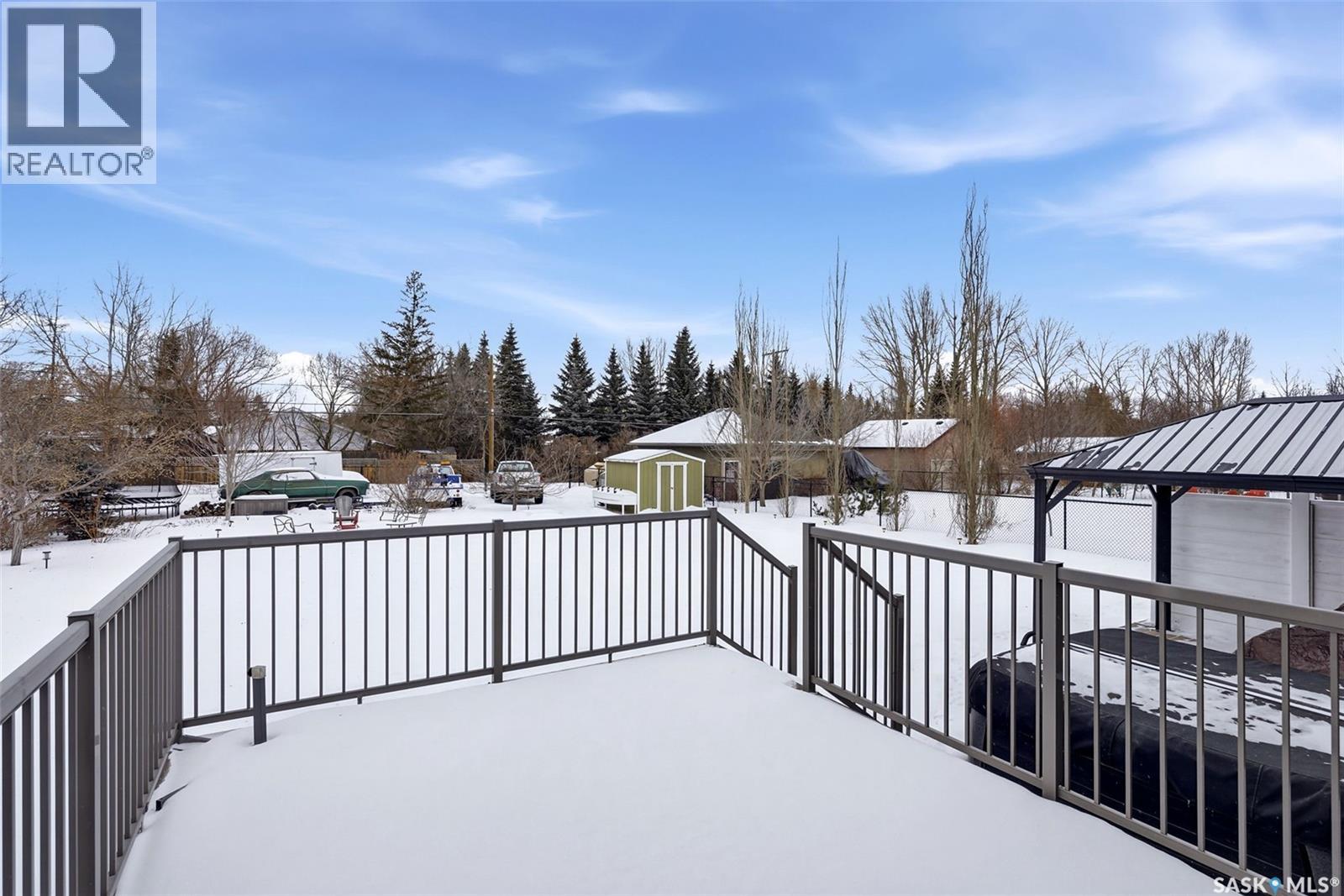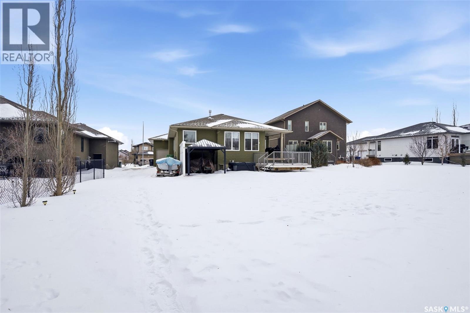 Welcome to 41 Lott Road East, a wonderful opportunity to own a home in the heart of White City. Set on a large lot with lane access at the back, this property offers the perfect blend of small-town charm and everyday convenience just minutes from Regina. The home features a functional layout with bright, inviting living spaces designed for comfortable family living and entertaining complete with natural gas fireplace. Large windows fill the home w/ natural light, creating a warm and welcoming atmosphere throughout. The kitchen and living areas flow seamlessly, making the space ideal for both daily life and gatherings with friends and family. The main floor features three generously sized bedrooms, the primary bedroom includes a walk in closet and 5 pc ensuite! Completing the main floor is a laundry room (no more hauling laundry up and down!) The triple attached heated garage leads into a well appointed mudroom that connects to the front entry. The fully finished basement adds exceptional value and versatility, featuring two additional bedrooms, a large recreation room, and a den; perfect for a home office, gym, or hobby space. The rec room is a standout, complete with a wet bar + electric fireplace, making it an ideal setting for movie nights, games, or hosting guests. Outside, enjoy a spacious yard with plenty of room to relax, garden, or entertain, all while appreciating the peaceful surroundings White City is known for. The property offers a 2 tier composite deck, gazebo, shed, hot tub, ample parking and outdoor space, room to build a detached garage (lane access) providing flexibility for families, hobbyists, or those looking to create their own backyard retreat. Located just minutes from schools, parks, walking paths, and local amenities, this home also offers easy access to Regina while maintaining the quiet lifestyle of a close-knit community. This is a fantastic opportunity for families, or anyone looking to enjoy the comfort + charm of White City living. (id:44393)