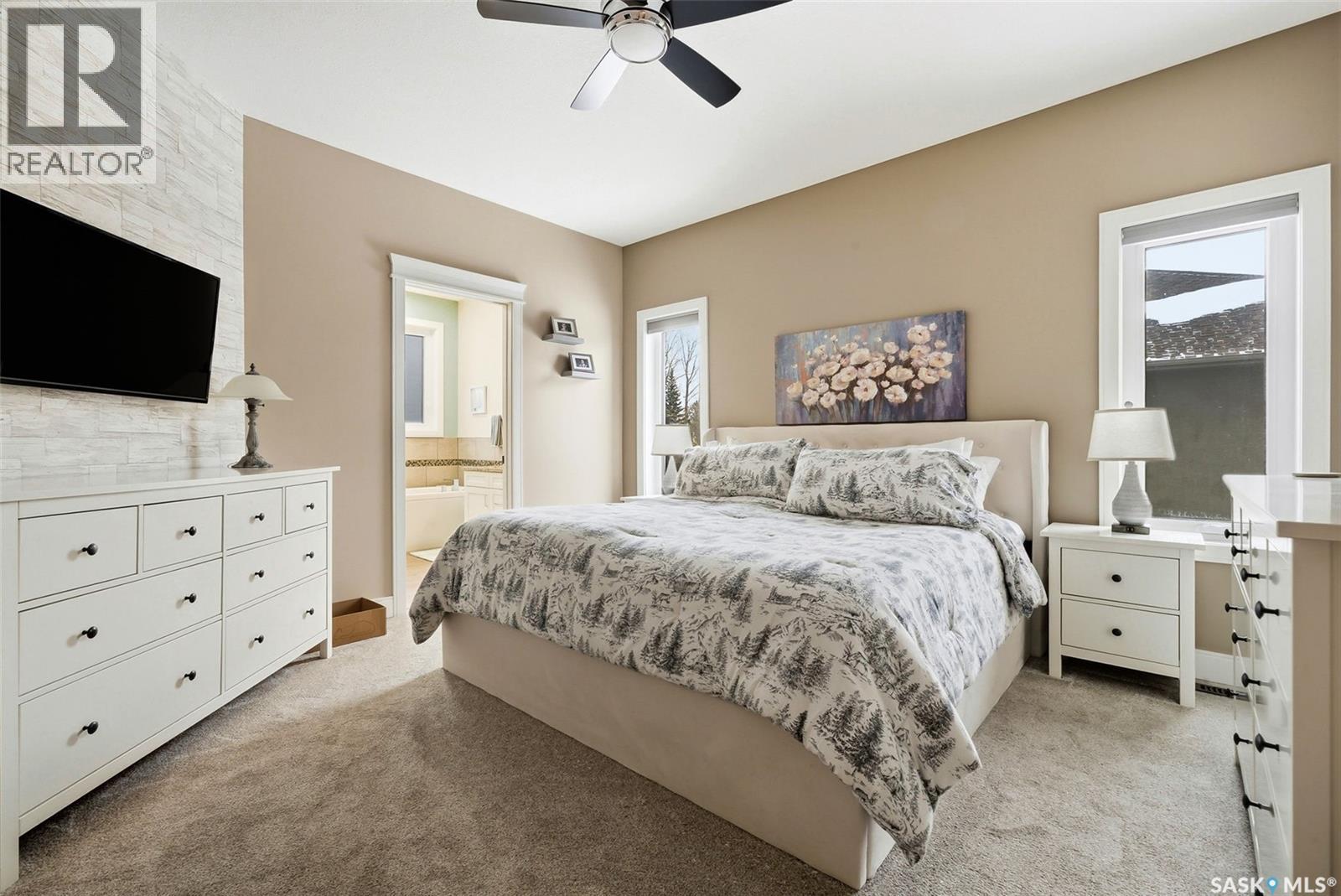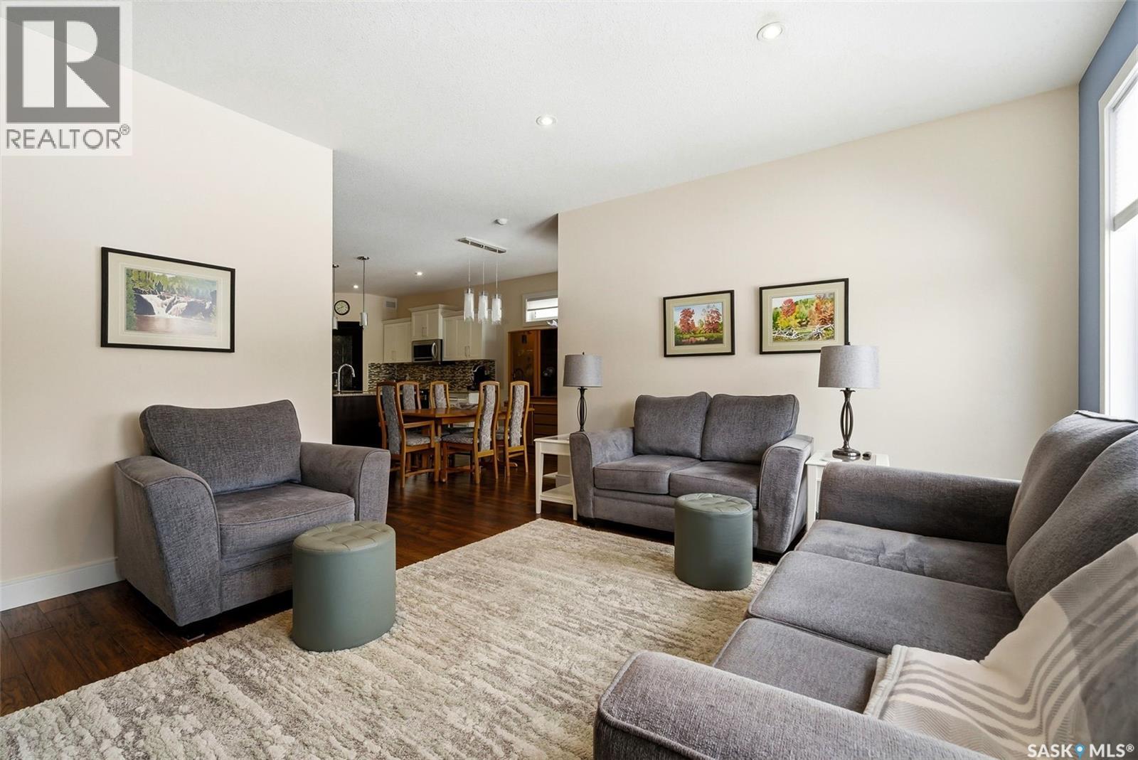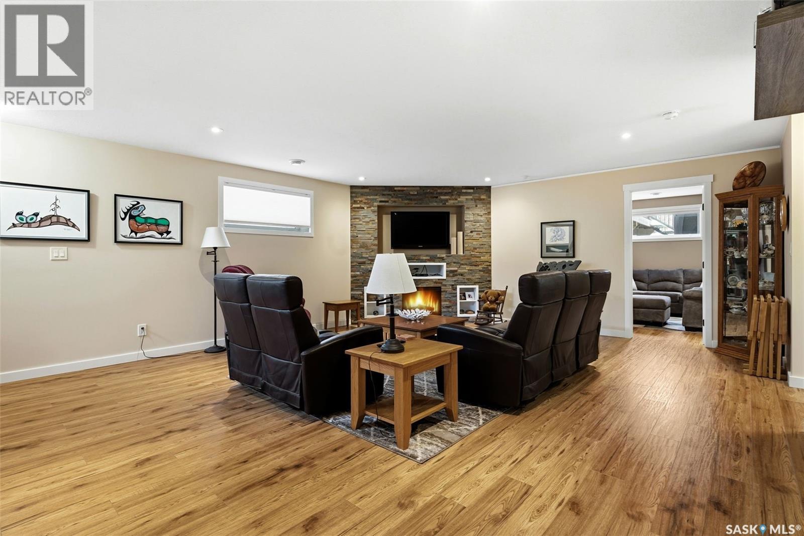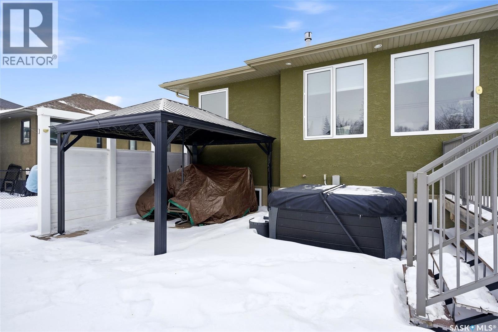 Welcome to 41 Lott Road East, a wonderful opportunity to own a home in the heart of White City. Set on a large lot with lane access at the back, this property offers the perfect blend of small-town charm and everyday convenience just minutes from Regina. The home features a functional layout with bright, inviting living spaces designed for comfortable family living and entertaining complete with natural gas fireplace. Large windows fill the home w/ natural light, creating a warm and welcoming atmosphere throughout. The kitchen and living areas flow seamlessly, making the space ideal for both daily life and gatherings with friends and family. The main floor features three generously sized bedrooms, the primary bedroom includes a walk in closet and 5 pc ensuite! Completing the main floor is a laundry room (no more hauling laundry up and down!) The triple attached heated garage leads into a well appointed mudroom that connects to the front entry. The fully finished basement adds exceptional value and versatility, featuring two additional bedrooms, a large recreation room, and a den; perfect for a home office, gym, or hobby space. The rec room is a standout, complete with a wet bar + electric fireplace, making it an ideal setting for movie nights, games, or hosting guests. Outside, enjoy a spacious yard with plenty of room to relax, garden, or entertain, all while appreciating the peaceful surroundings White City is known for. The property offers a 2 tier composite deck, gazebo, shed, hot tub, ample parking and outdoor space, room to build a detached garage (lane access) providing flexibility for families, hobbyists, or those looking to create their own backyard retreat. Located just minutes from schools, parks, walking paths, and local amenities, this home also offers easy access to Regina while maintaining the quiet lifestyle of a close-knit community. This is a fantastic opportunity for families, or anyone looking to enjoy the comfort + charm of White City living. (id:44393)