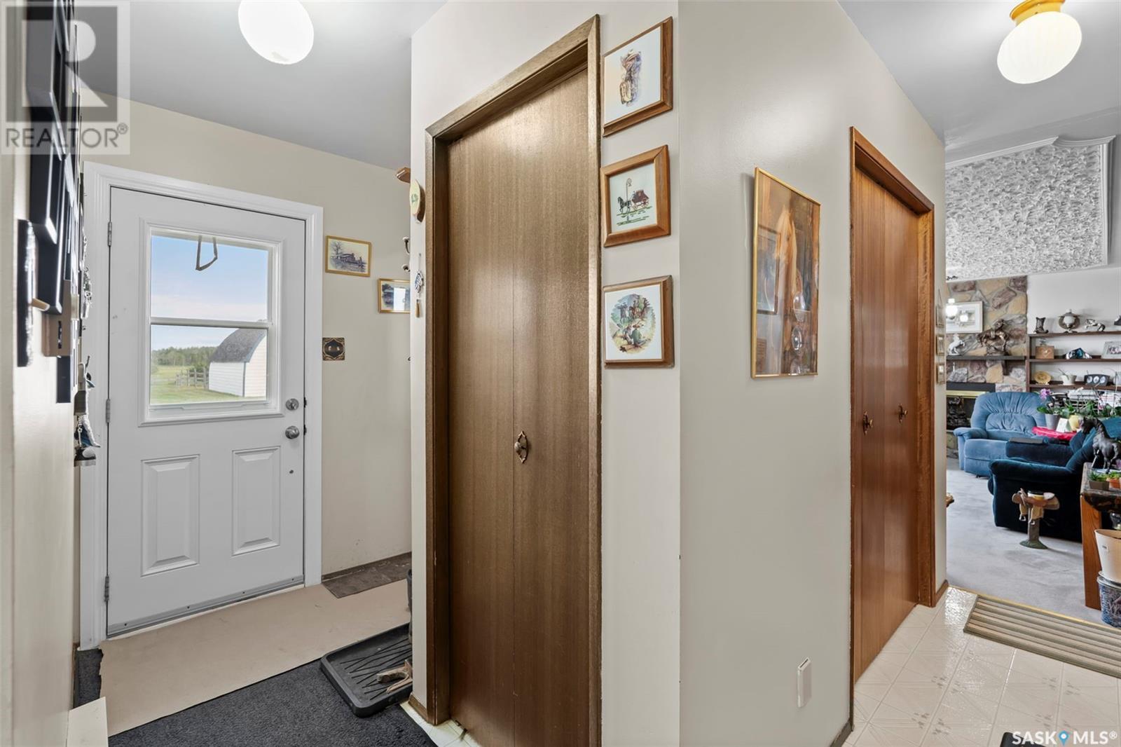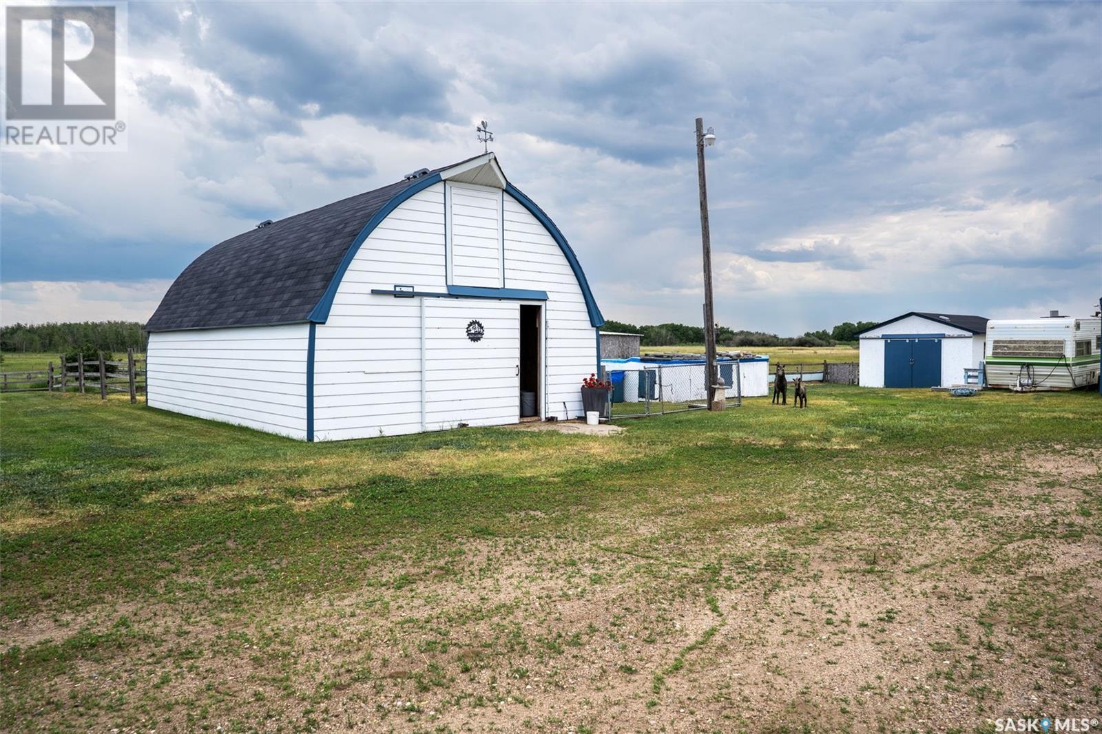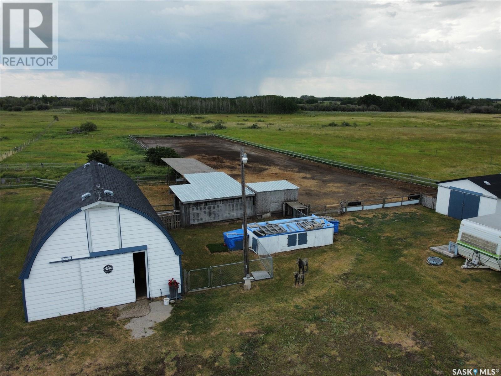 Private 55.92-Acre Retreat minutes from Saskatoon, Fully on PAVEMENT! This exceptional 55.92-acre property offers the perfect balance of space, privacy, and convenience, located just minutes from Saskatoon with pavement right to your driveway. No gravel roads, just smooth access year round. Set well back from the road, the 1,617 sq ft bungalow is surrounded by open skies and mature trees, with pride of ownership evident throughout. Bright, spacious, and move-in ready, it’s a peaceful place to call home. Perfect for horse enthusiasts or hobby farmers, the property includes a 40' x 66' Quonset with concrete floor, 2 barn's ,2 sheds, Welding Shop ,Multiple animal shelters in the pastures. Tack Shop and a round pen for all your horse needs. The land is fenced and cross-fenced, featuring two water bowls, a large garden, and a beautifully treed section with a private walking trail. A rare opportunity to enjoy acreage living with room to roam offering peace, functionality, and quick access to all Saskatoon amenities. (id:44393)