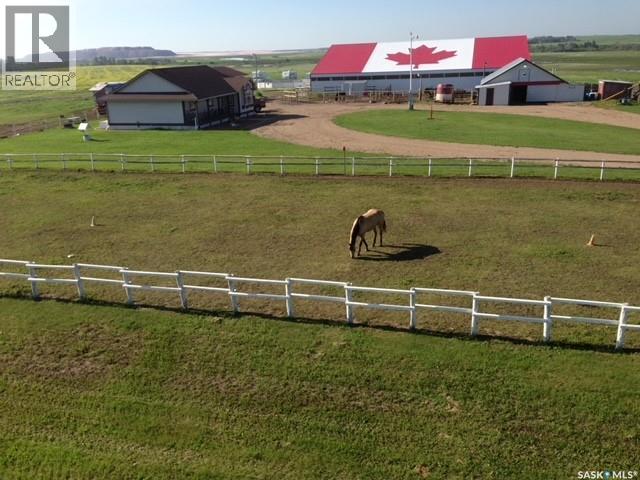 125 acres just minutes west of Saskatoon with 1365 sq.ft. bungalow built in 1994. 23 x 24 heated shop complete with 3 overhead doors, older barn full of box stalls and the true feature - a 120 x 80 like new indoor riding arena. Totall developed with multiple box stalls, tack room and upper level announcer booth. Mulitple outdoor pens with shelters and water hydrant. Note: This property has city water. Call today to book your personal viewing!Check out the youtube virtual tour @ https://youtu.be/Sg-wfBNaJrA .Call today for your personal viewing! (id:44393)