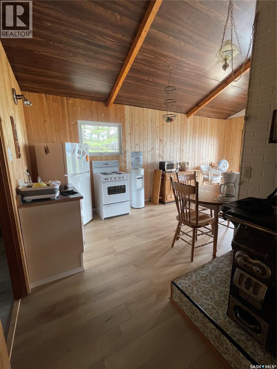 Lake front cabin in the Regional Park at Meeting Lake. Located just steps from the public beach, this cute and cozy hideaway features 2 beds, 1 bath and an amazing open concept. Recent upgrades: brand new flooring, wood wall panels and some newer windows. And as a beautiful addition, an antique wood stove. The cabin is connected to the park's water supply, and has a private septic system. The park itself has a seasonal store, public beach, playground and mini golf. This well maintained cabin is waiting for its new family. Come check out this perfect summer getaway. (id:44393)