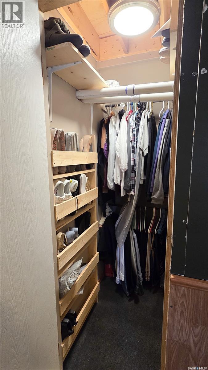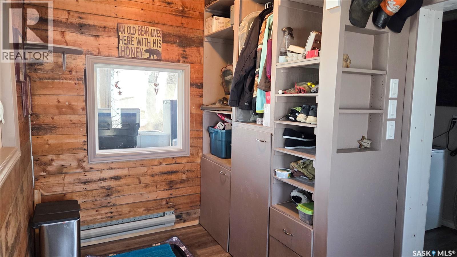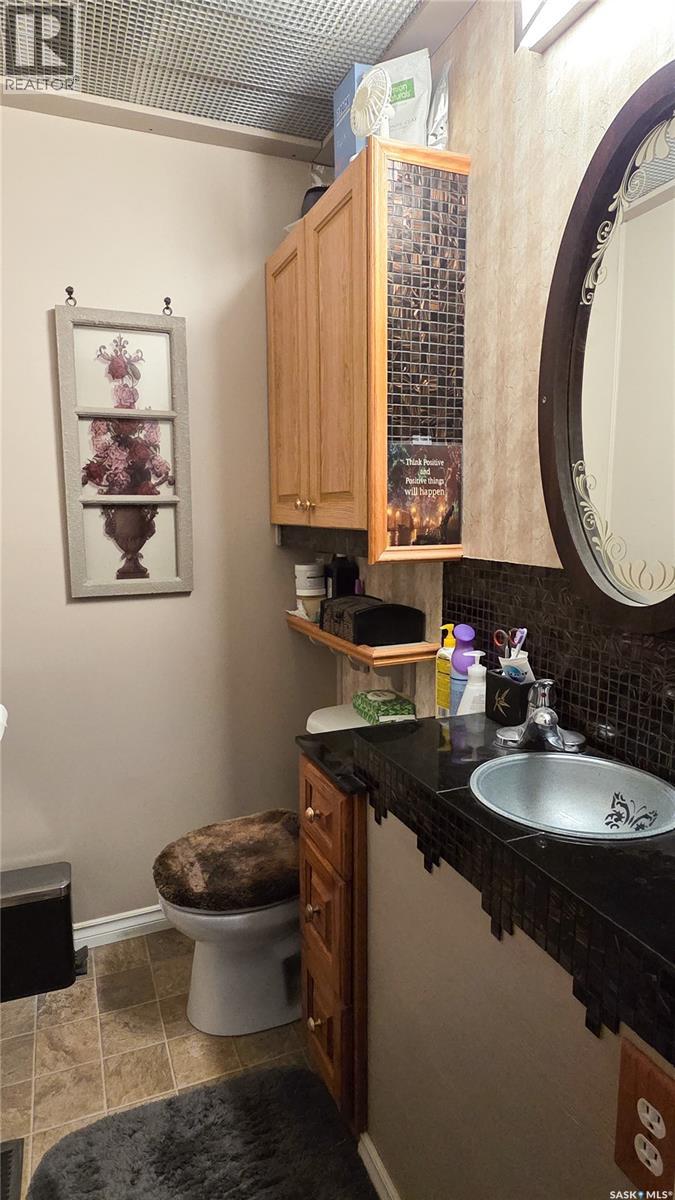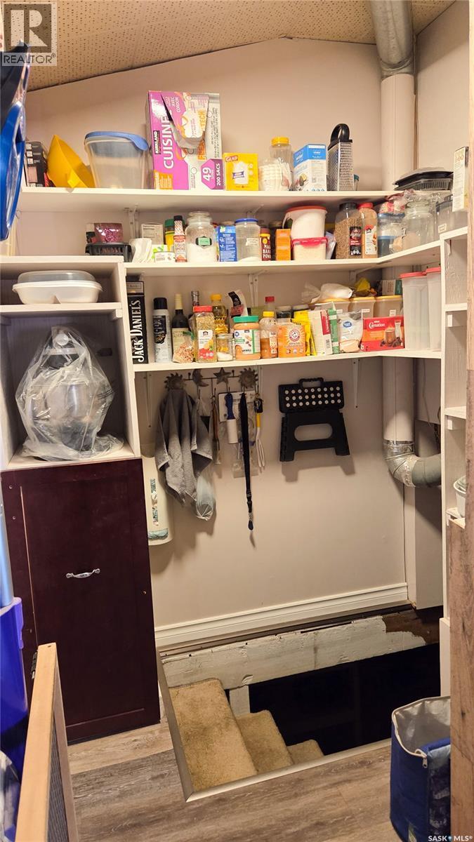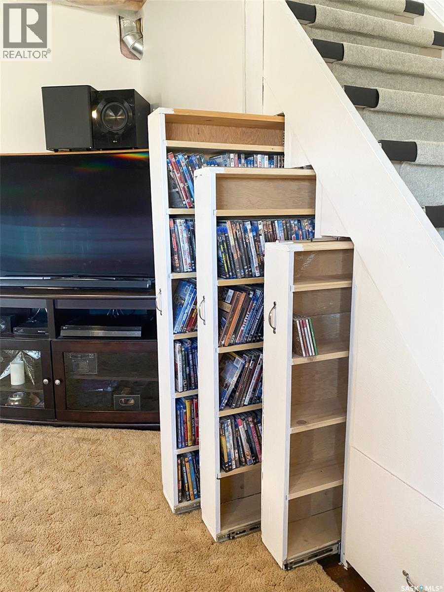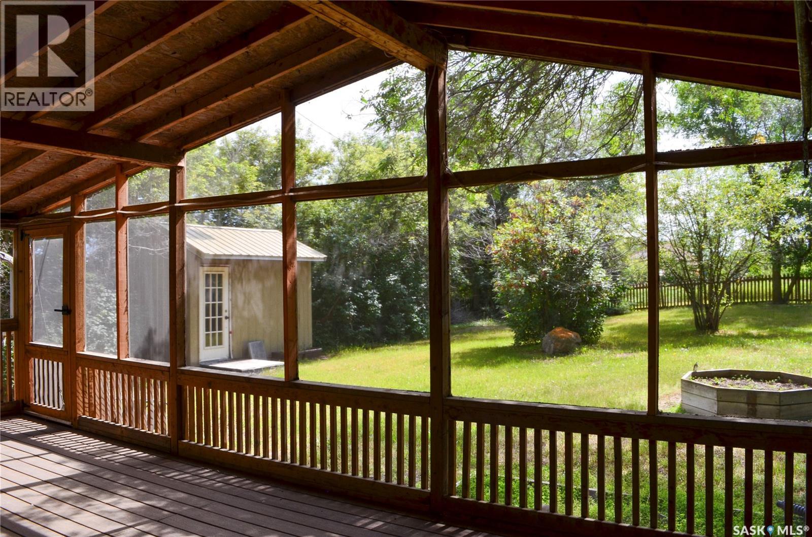 Welcome to this great property in Ruthilda! This 1630ft² home features 3 bedrooms, 1 full bathroom and a 2 piece en-suite, a detached 2 car garage, a beautiful screened in deck complete with a fire table that is perfect for relaxing outside this summer and many updates including the flooring, drywall, insulation, paint and so much more. This home has many great storage solutions, including slide out movie shelving, shoe storage in the main bedroom closet, a pullout drawer by the basement stairs and storage space in the upstairs bedroom where it would normally just be wasted space! The basement has even more storage space with plenty of shelving, a cold storage room and a space perfect for using as a hobby room. Outside you will find a small shed, a second shed perfect for storing your quads or other toys, a few other buildings with power and lots of space to enjoy the outdoors. Ruthilda has a post office, is close to a great bar & grill in Springwater and is 30 minutes away from Biggar and Kerrobert where you can find many amenities. Contact your favourite REALTOR and book a showing today! (id:44393)