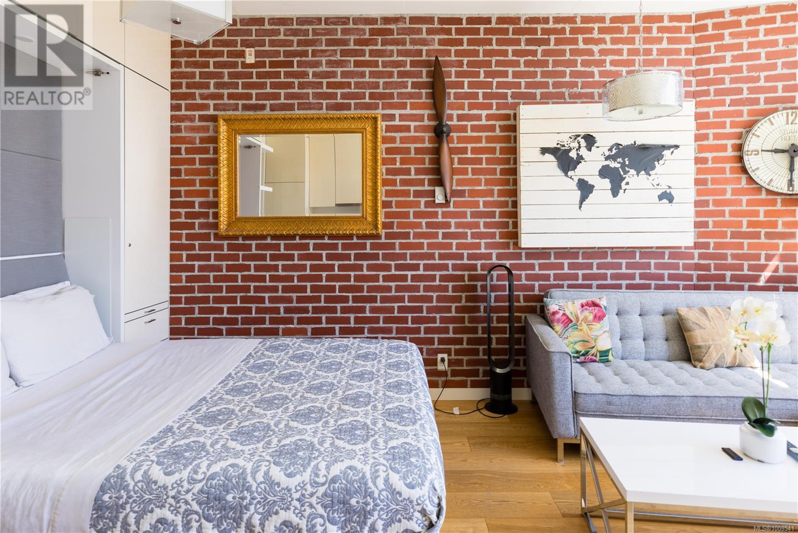 $382.82 MonthlyWelcome to your dream urban oasis at the iconic Janion Building in downtown Victoria. This 353 square foot studio condo with 33 square foot balcony presents remarkable investment potential. The compact layout, adorned with over-height ceilings and sunlit southern exposure, feels remarkably spacious. This suite comes with a well-equipped kitchenette, a cozy balcony, and is designed for fully independent living. The Janion offers amenities such as a gym, meeting room, and an awe-inspiring shared rooftop deck overlooking the inner harbour. A generously-sized bike-friendly storage locker is also included. Nestled steps away from Market Square and China Town, this location is surrounded by a host of superb restaurants and entertainment. Be it a first property purchase, a vacation home, or a revenue-generator, this condo is a wise choice. (id:44393)