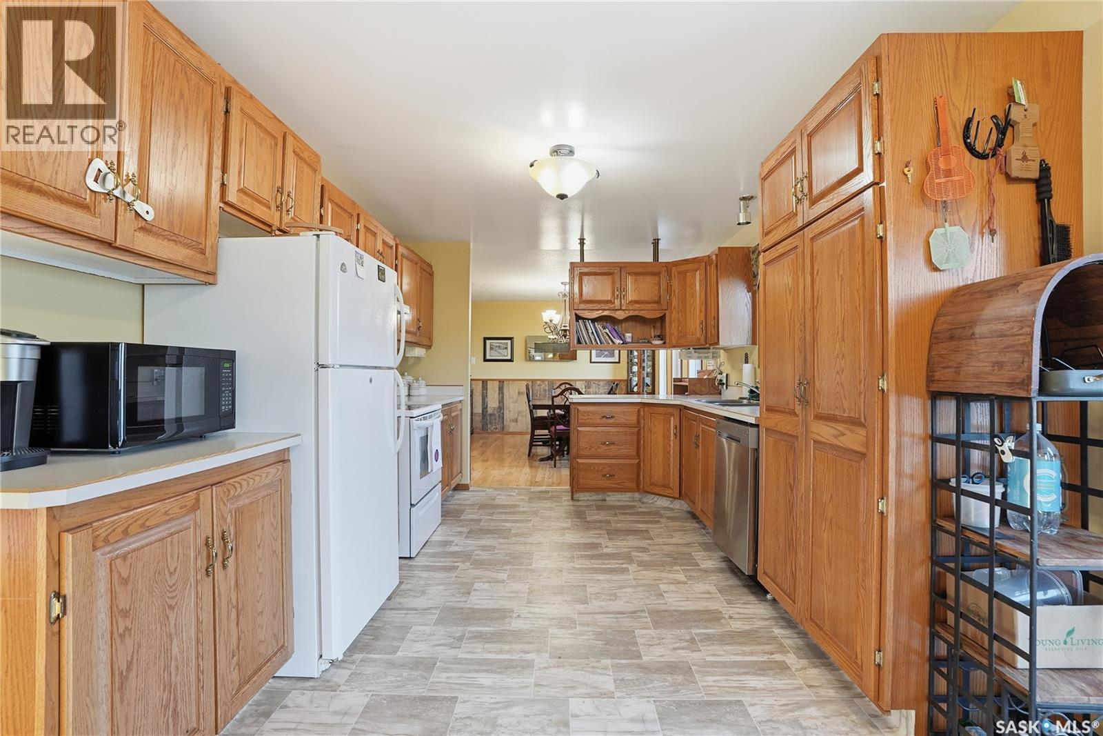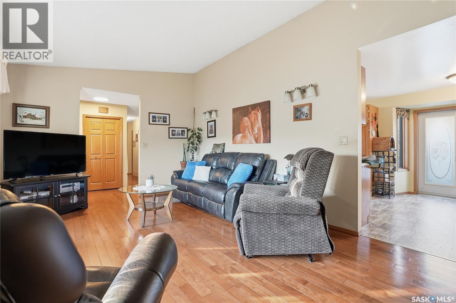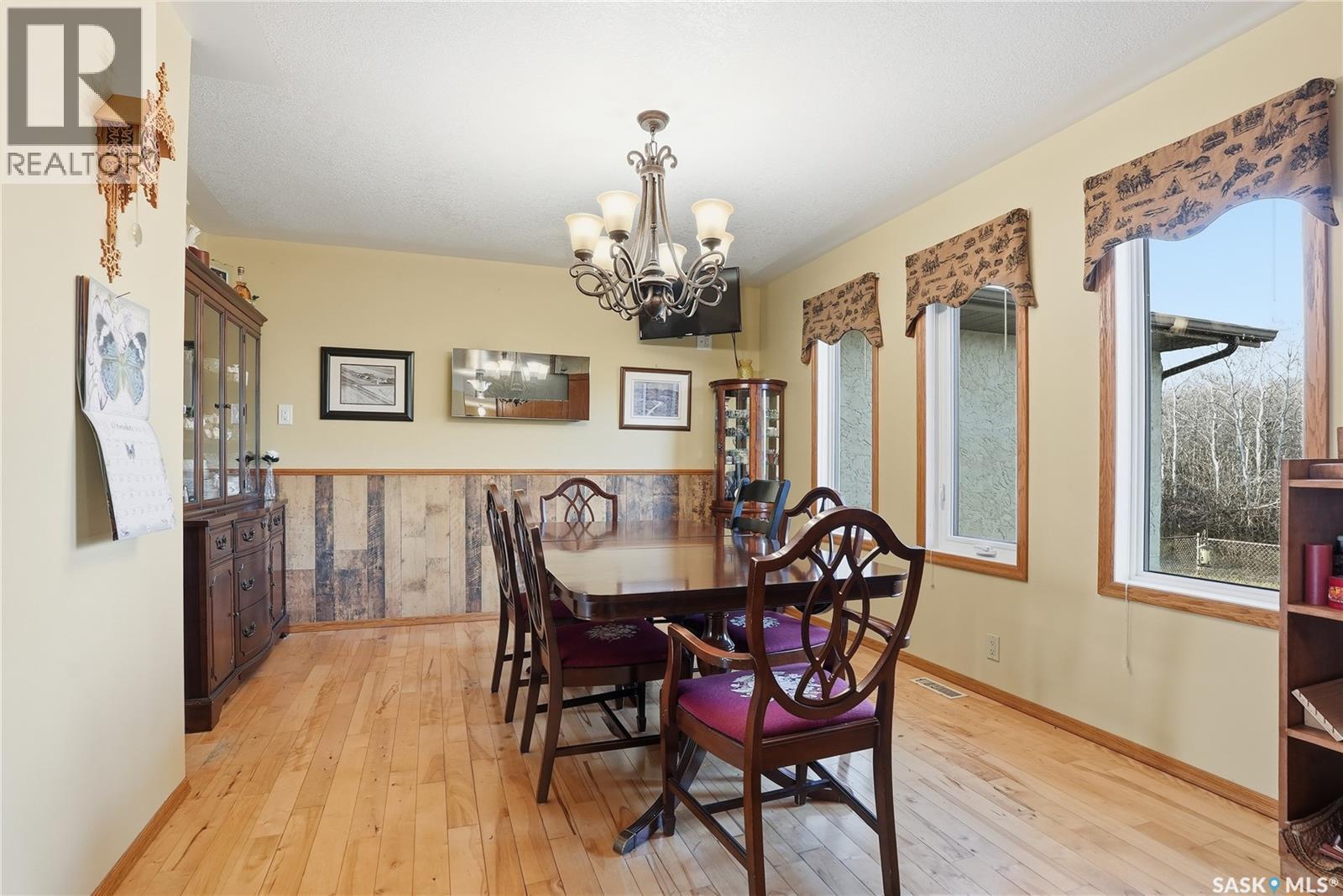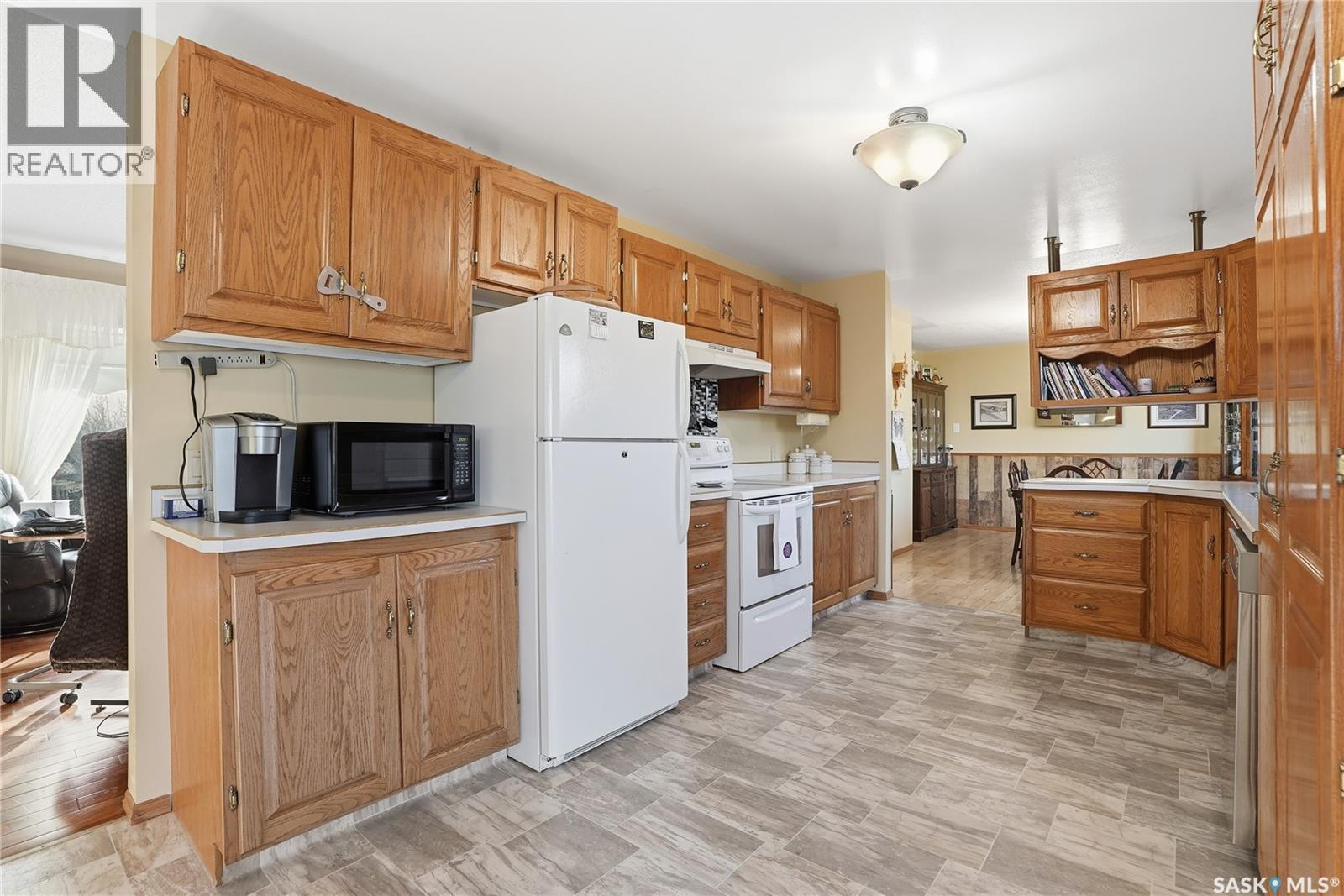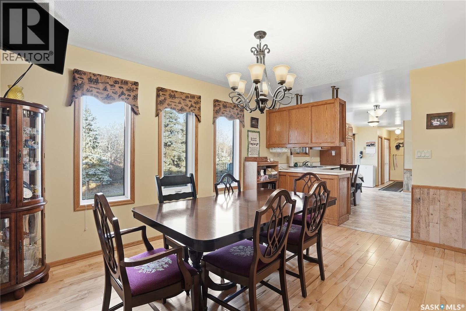 Only 6 km from Saskatoon’s city limits and a short 7 km bus ride to Montgomery School, the Merrill School Road Acreage blends wide-open country freedom with city convenience. Spanning 70 beautifully treed acres—with an additional 80 acres available directly behind for a full 150-acre package—this rare property is a private sanctuary surrounded by pasture, mature shelterbelts, and abundant wildlife. Ideal for horses, a hobby farm, or long-term investment, the back 80 acres are fully fenced and ready for hay or livestock, while the front features towering trees, a fenced garden, and pastures once home to sheep, pigs, horses, and cattle. Nestled among the trees, the 1838 sq ft raised bungalow exudes warmth and craftsmanship, with pristine oak cabinetry, vaulted ceilings, and maple hardwood floors. The bright country kitchen opens to a formal dining room with newer windows, creating an inviting family gathering space. The main floor offers three bedrooms—including a vaulted master with ensuite potential—a four-piece bath, and a second bath off the mudroom. The lower level adds more bedrooms and a non-conforming suite with its own kitchen, bath, laundry, and separate entrance—perfect for extended family or rental income (currently $1,000/month). The heated triple garage, with 11-foot walls, provides excellent space for vehicles or a workshop. Comforts include natural gas, central air, high-efficiency furnace (8 years old), backup generator, soft water from a reliable well, large hot water tank, and septic pump-out system. Outside, enjoy the sturdy deck, fenced backyard, corrals, and open space to roam. Power is underground to the front parcel, and the sandy, well-draining soil with its mix of pasture and trees makes this land ideal for countless uses. Properties of this size and seclusion, yet so close to the city, are seldom found—Merrill School Road Acreage offers the space to grow, breathe, and live your country dream. (id:44393)