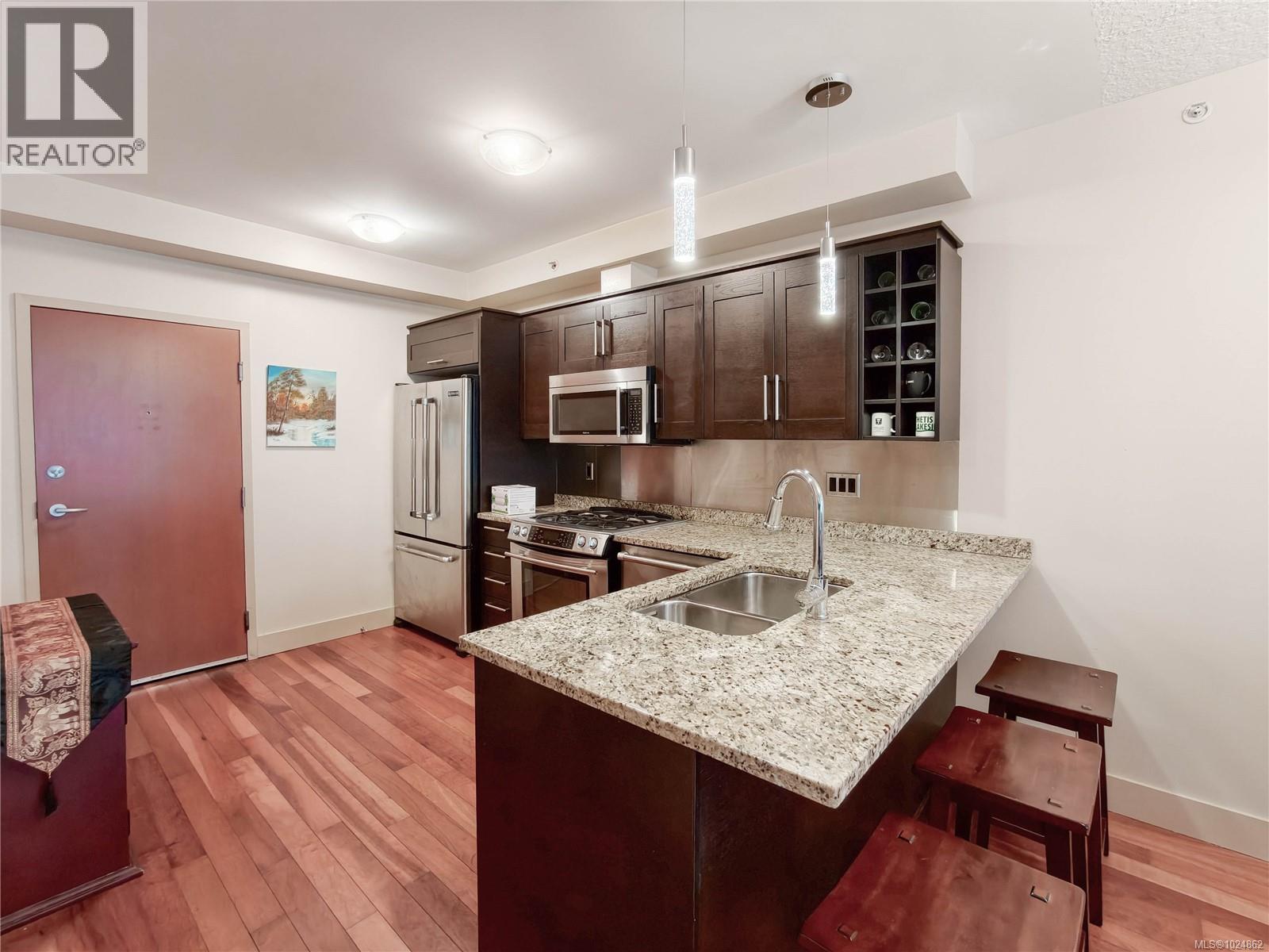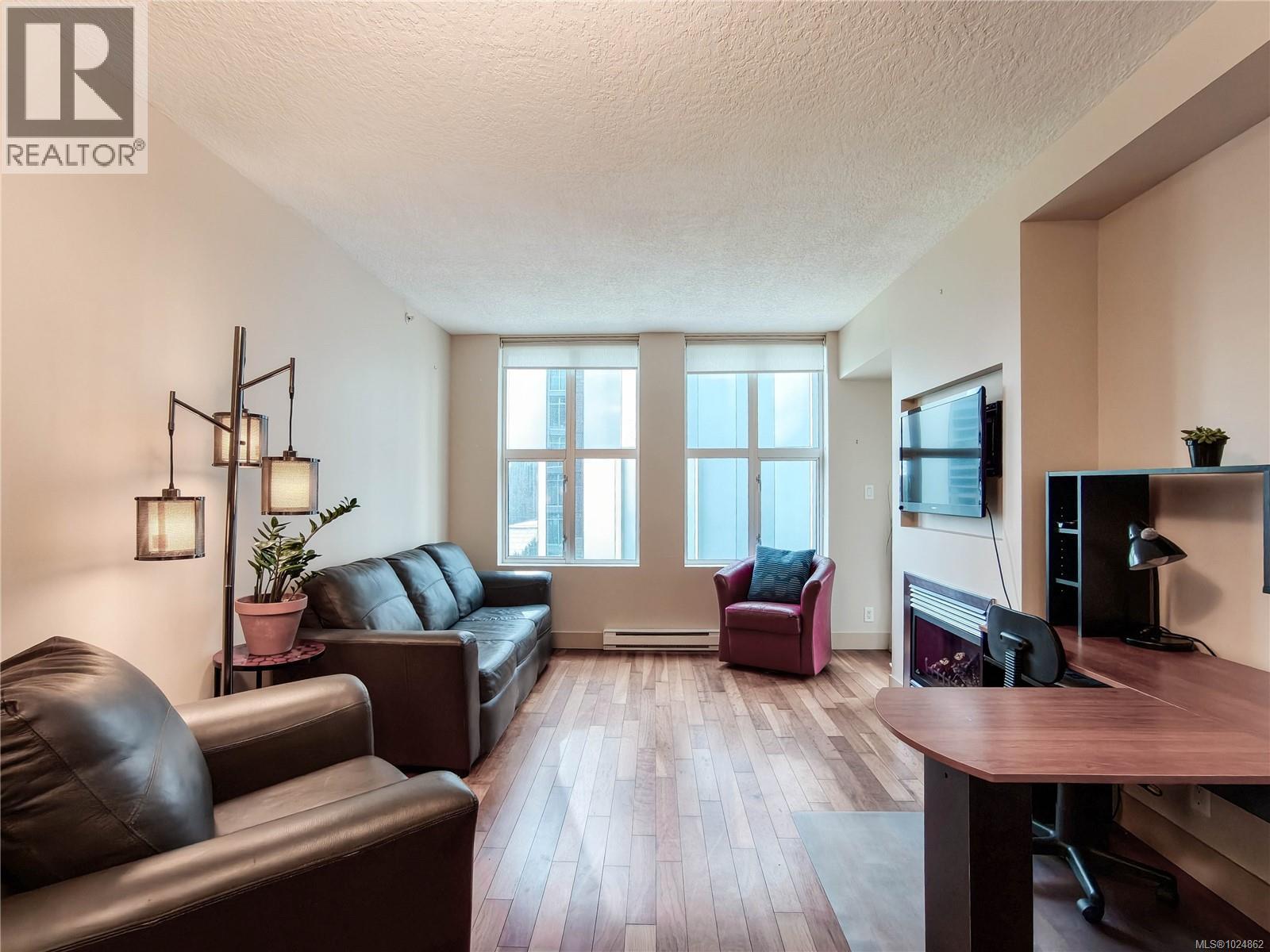 $427 MonthlyPrime downtown Victoria location just steps to top restaurants, shops, entertainment, the Inner Harbour, Beacon Hill Park, and the Royal BC Museum. The Aria is one of the city’s most sought-after addresses, offering concierge service, a strong sense of community, and outstanding amenities including a fitness centre, lounge/rec room, sauna, and hobby room. This immaculate 1bedroom and 1 bathroom home features hardwood floors, granite countertops, stainless steel appliances, gas fireplace, and floor-to-ceiling windows. Secure underground parking, bicycle storage, and separate storage included, along with one parking stall. (id:44393)