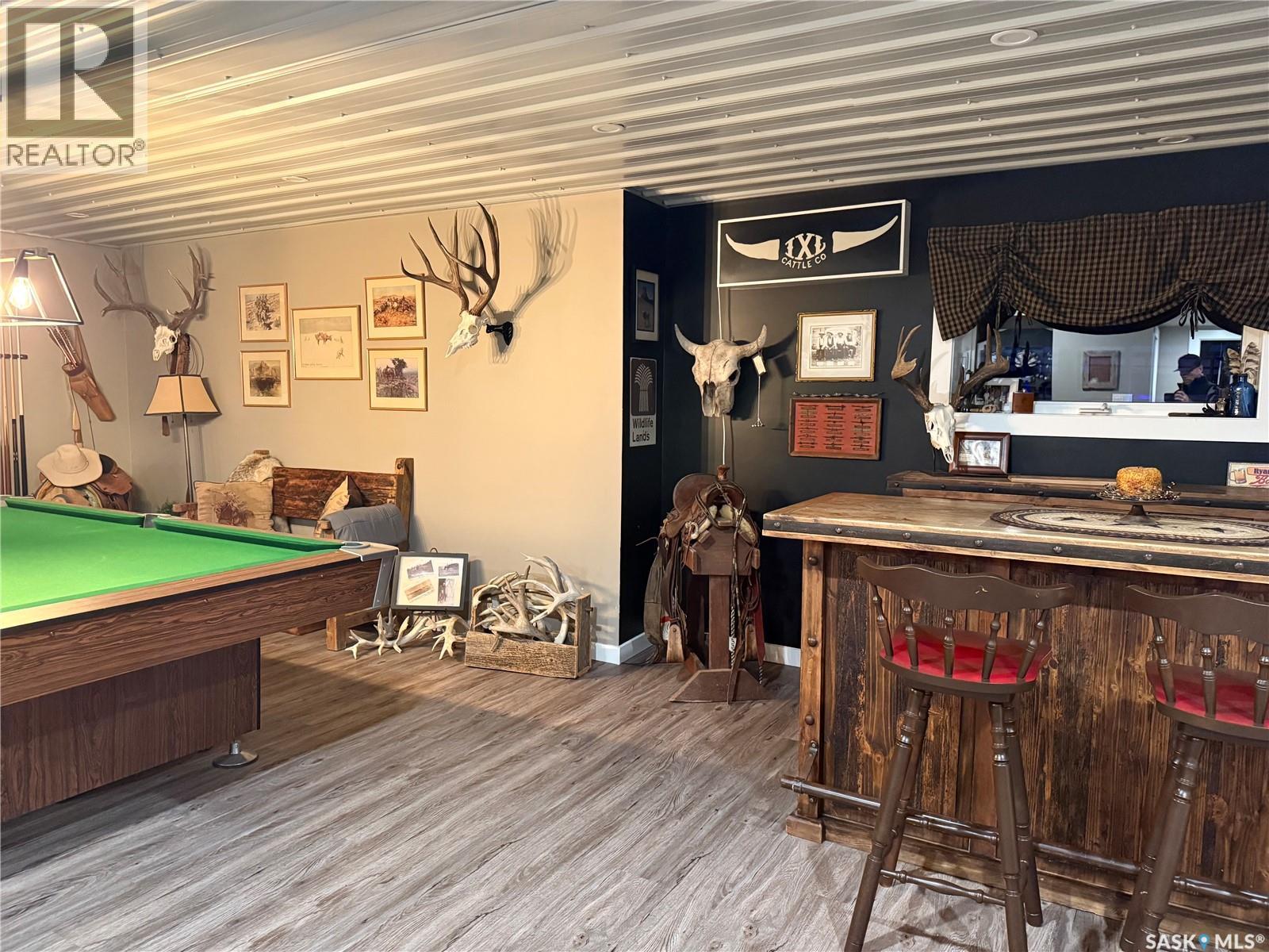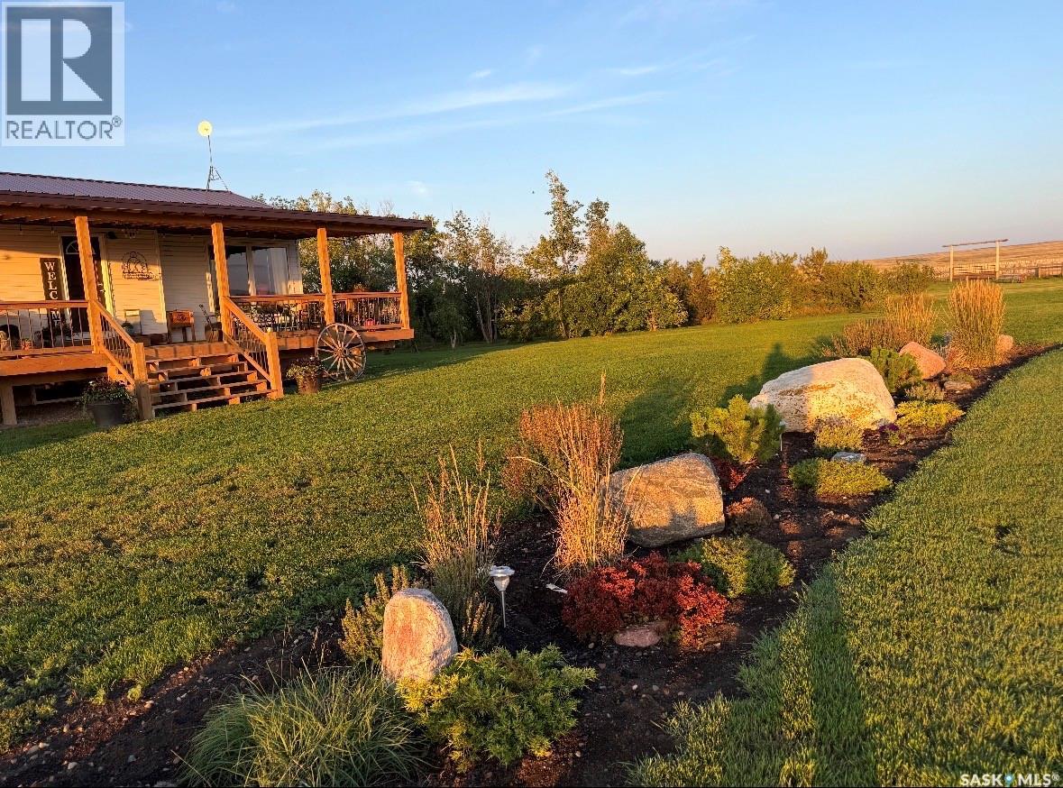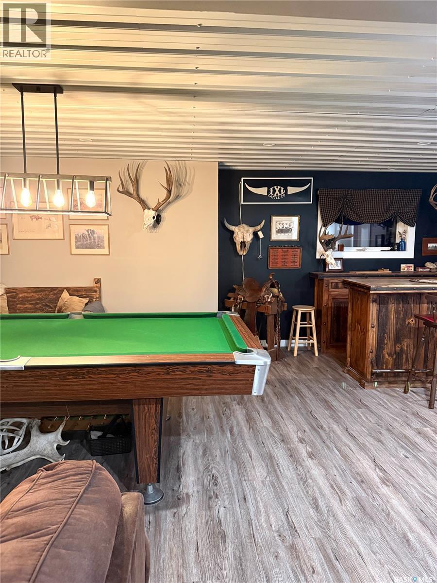 Welcome to this gorgeous 54-acre property boasting breathtaking views of the Cypress Hills, located just a short 15-minute drive east of Maple Creek. The meticulously updated home features new windows and a hot water tank, with the seller noting that the furnace was replaced in 2017. Inside, you'll find four spacious bedrooms—including one upstairs currently used as an office—and two bathrooms, creating a comfortable family home. The home is fully modernized, down to thoughtful touches like a pot-filling tap above the stove and offers the comfort of air conditioning. Downstairs was designed with family and friends in mind with a bar, room for a pool table and a built-in entertainment centre; there is even room for a workout machine. Step outside to enjoy a single-car garage near the house, a cozy firepit area, and a well-equipped riding arena illuminated by solar lights. The fuel source here is a large propane tank that requires filling only once or twice a year, and the well provides potable water. For hobbyists or those needing extra workspace, the 30x50 shop comes complete with a cement floor and a wood-burning stove. This unique property blends rural charm with modern conveniences—truly a must-see! (id:44393)