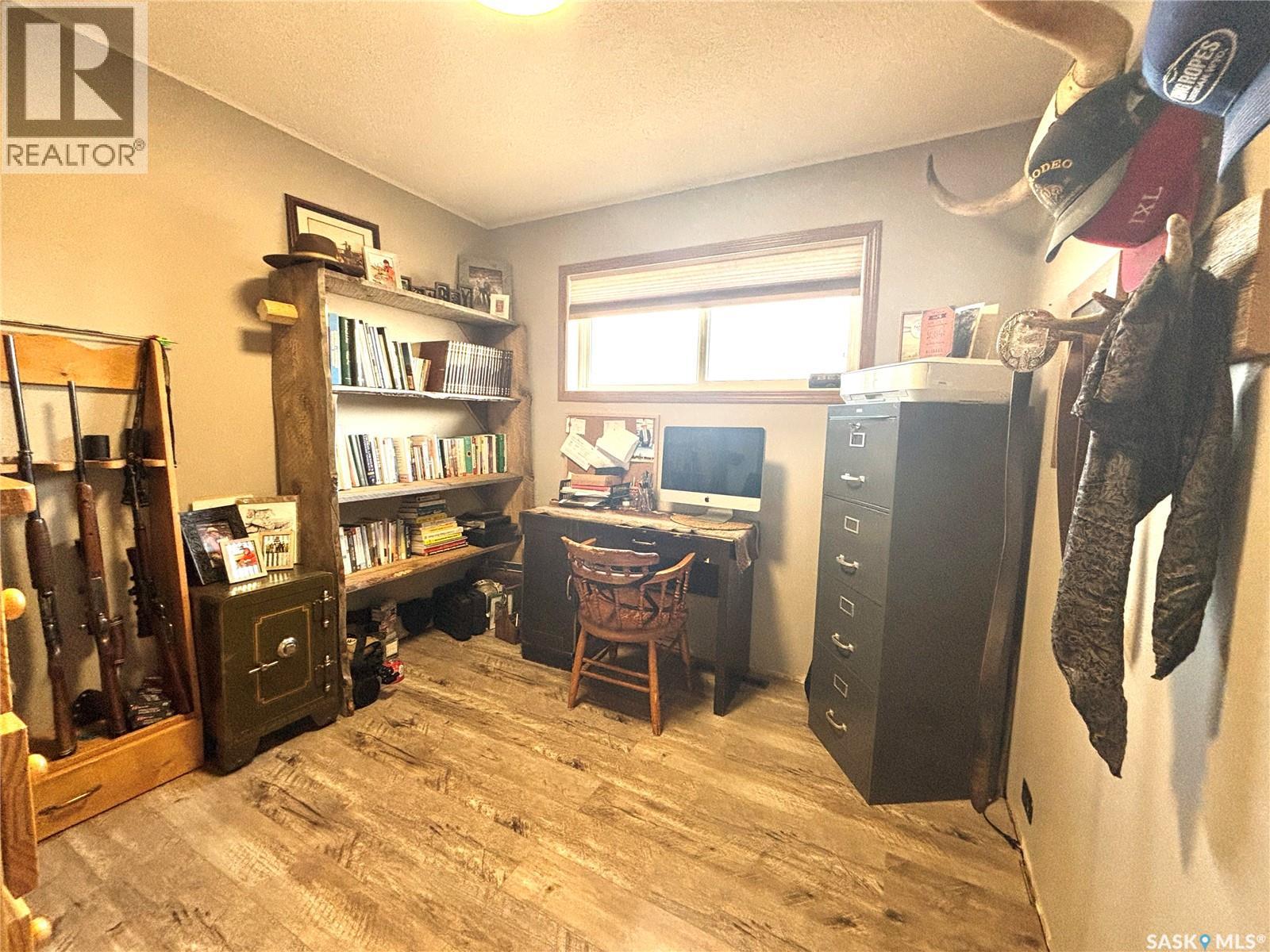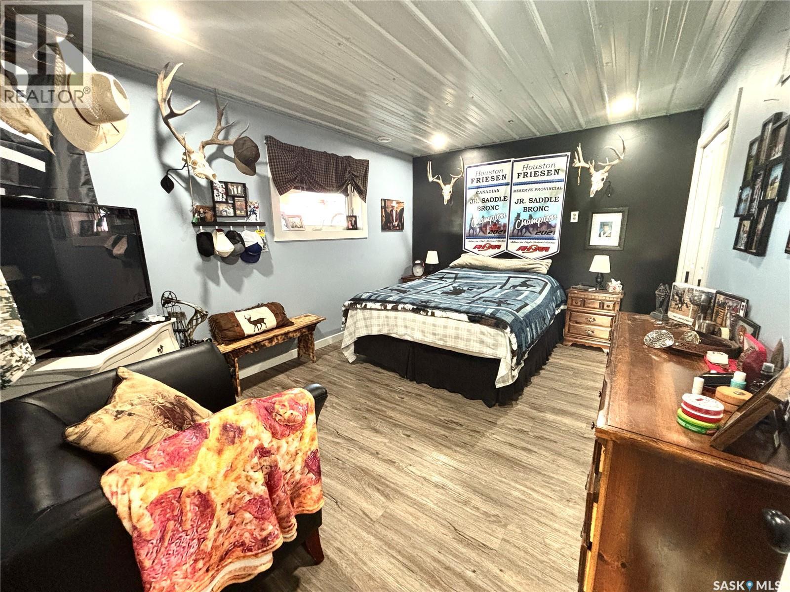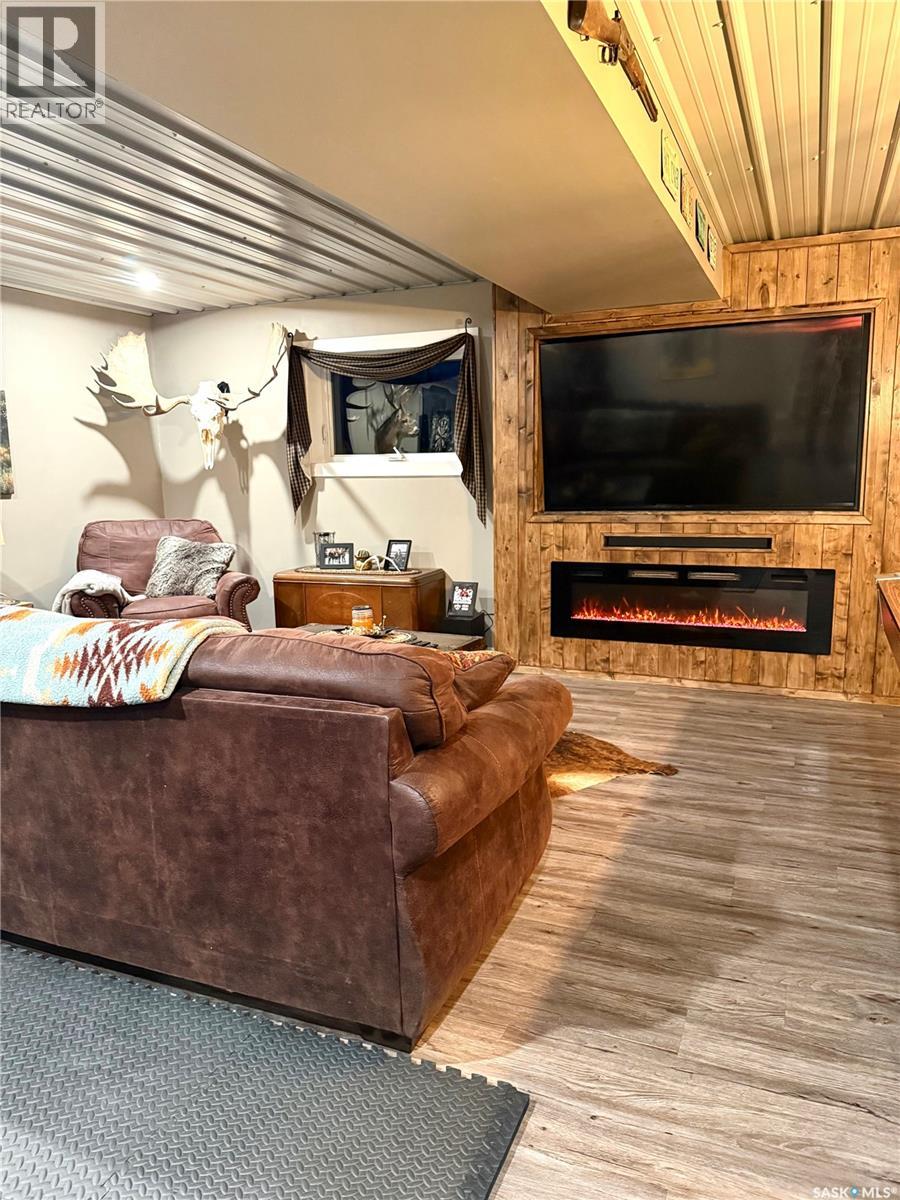 Welcome to this gorgeous 54-acre property boasting breathtaking views of the Cypress Hills, located just a short 15-minute drive east of Maple Creek. The meticulously updated home features new windows and a hot water tank, with the seller noting that the furnace was replaced in 2017. Inside, you'll find four spacious bedrooms—including one upstairs currently used as an office—and two bathrooms, creating a comfortable family home. The home is fully modernized, down to thoughtful touches like a pot-filling tap above the stove and offers the comfort of air conditioning. Downstairs was designed with family and friends in mind with a bar, room for a pool table and a built-in entertainment centre; there is even room for a workout machine. Step outside to enjoy a single-car garage near the house, a cozy firepit area, and a well-equipped riding arena illuminated by solar lights. The fuel source here is a large propane tank that requires filling only once or twice a year, and the well provides potable water. For hobbyists or those needing extra workspace, the 30x50 shop comes complete with a cement floor and a wood-burning stove. This unique property blends rural charm with modern conveniences—truly a must-see! (id:44393)