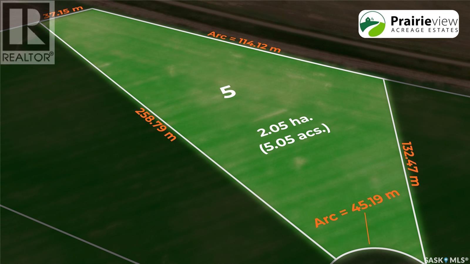Build your dream home in Prairieview Acreage Estates! Located on paved HWY 734, just 10 minutes from Regina's north end, you will find this country residential acreage community. Escape the hustle of the city and live the acreage lifestyle you have been dreaming of! Gas and power services are provided to the property, making building your dream home a breeze. The acreages in the development range in size from 4.6 acres to 12.69 acres. These large acreage lots provide ample opportunity for creative home designs. The location is just minutes from three golf courses (Flowing Springs, Deer Valley, and Sherwood Forest Country Club). Bus access is provided to Lumsden Elementary and Lumsden High School, offering both English and French programs. Another bonus—choose your own builder! Don't miss the opportunity to visit Prairieview Acreage Estates today and experience the unmatched views and peaceful serenity of country living at its finest. Visit the developer's website at https://www.prairieviewestates.ca (id:44393)