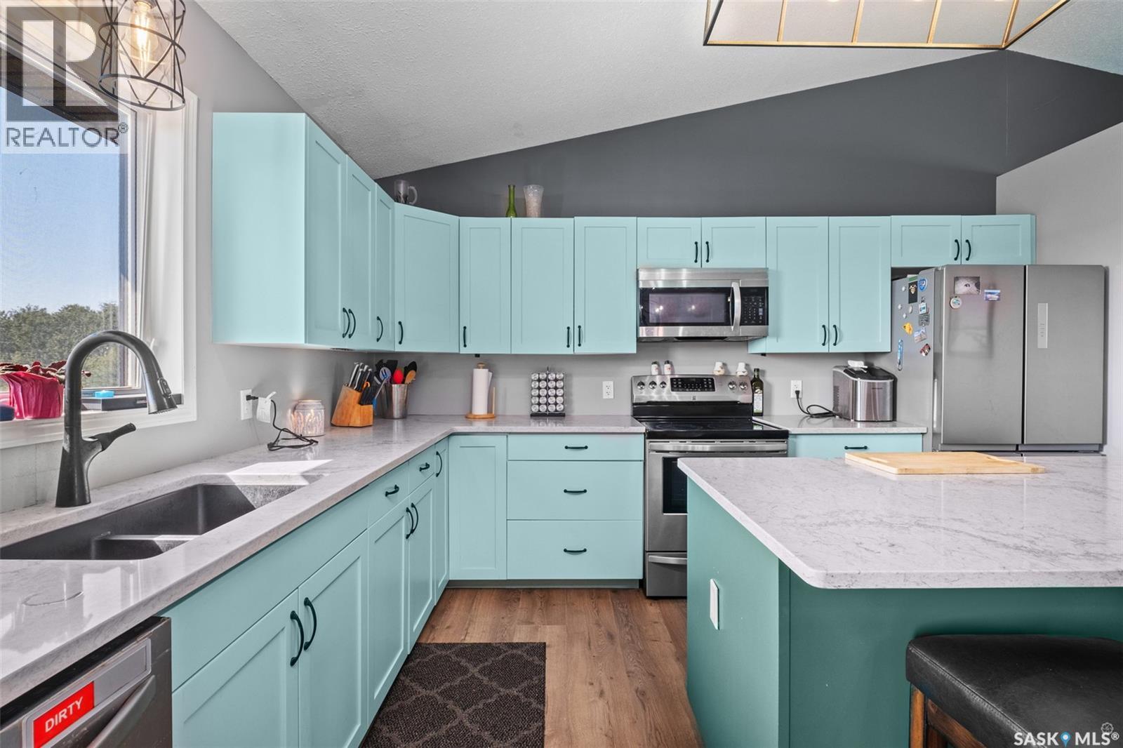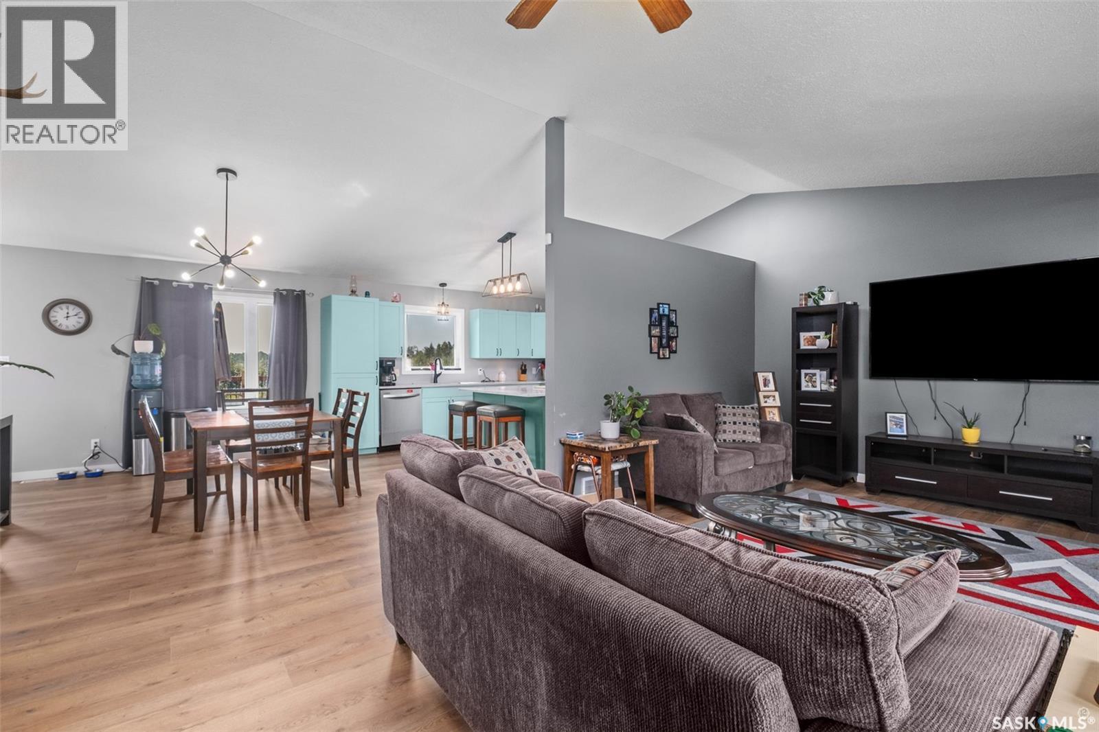 The perfect acreage does exist! Move in ready, the 4 bedroom, 3 bathroom residence is the perfect bridge way between the lake life and city living. The main level provides a huge front living room, massive custom kitchen with stone counter tops, soaring vaulted ceilings and a ton of natural lighting throughout. The lower level comes fully developed with an awesome recreational/family room, a den, loads of storage and a walk out access. The exterior of the property supplies 14.47 acres of land with a large insulated shop, many sheds, spacious front and rear decks. (id:44393)