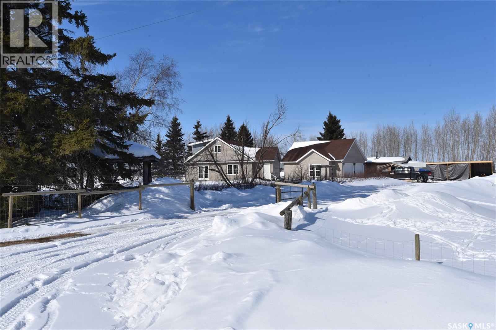 Beautifully maintained 13.23 acre property set up for comfortable rural living and ideal for animal grazing, featuring fully fenced land with multiple sectioned pastures. Currently operated as a homestead, this well-rounded acreage offers a bright and inviting 3-bedroom home with large windows throughout for plenty of natural light, a cozy wood-burning fireplace, and convenient main floor laundry. The property has seen several important upgrades, including an improved water system and recent electrical updates to house and outbuildings. Outside, the established yard offers a garden with raised beds, along with mature apple trees and an abundance of fruit including strawberries, rhubarb, haskap, and raspberry bushes. Well-equipped for a variety of uses, the property includes a double detached garage, greenhouse, barn, workshop, pole shed, and wood shed. Ideally located in the RM of Torch River with direct access off a paved road and an easy commute to Nipawin, this acreage is perfectly suited for those seeking a peaceful country lifestyle with practical amenities. Call today for more details! (id:44393)