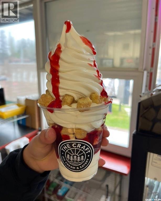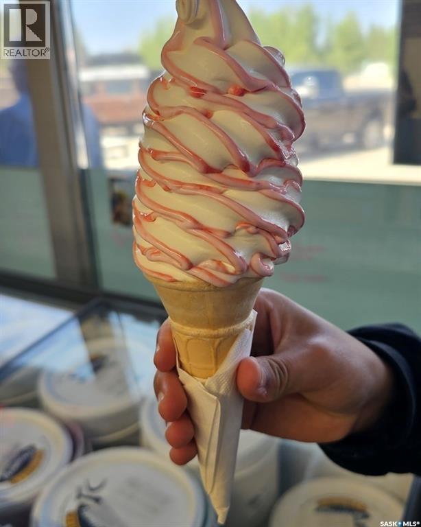 Thriving Candle Lake Favourite! Turn-key, updated, high-traffic seasonal business with that inviting southern-style outdoor eatery vibe - serving up artisan craft ice cream and a full comfort-food menu everyone loves. Perfectly located in the heart of Candle Lake, just steps from Waskateena Beach and surrounded by busy trailer parks and cabins in a sought-after Main Street location. The .28-acre lot (116' frontage) offers incredible visibility and room to grow. The 526 sq. ft. building features an order/pick-up window, fully equipped kitchen, prep area, Taylor ice cream machine, fryers, and modern commercial equipment. Includes staff bathroom, storage room, and powered storage shed. Completely renovated top-to-bottom, truly turn-key and ready for the next owner. Updates include Hardie board/metal siding, concrete work, patio seating, premium signage, powered menu board, upgraded lighting, and exterior sound system. Additional features: LG commercial A/C, water tanks, and Square POS for smooth, modern operations. A rare opportunity to own a beloved local landmark with proven success and exceptional potential to expand and thrive in beautiful Candle Lake! (id:44393)