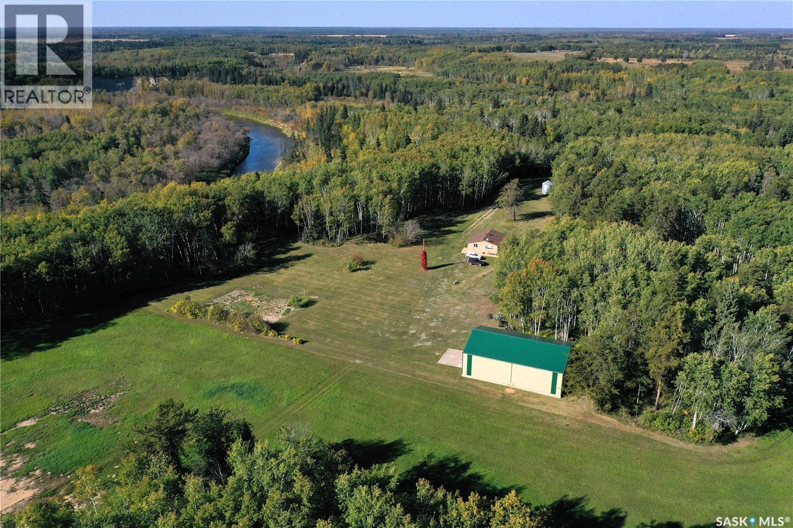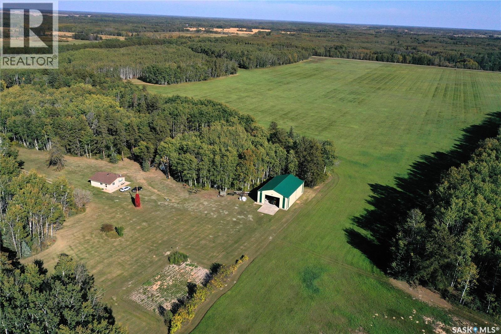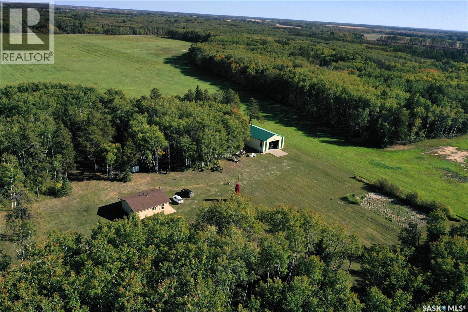 Pride of ownership shines throughout this stunning recreational quarter, the perfect blend of comfort and wilderness. You’ll be greeted by a charming tree-lined lane that opens to a warm and inviting bungalow home, handy storage shed, and an impressive 40’x60’ shop. The home features 2 bedrooms, an open-concept kitchen and living space, cozy wood stove, and electric baseboard heat—offering year-round comfort with rustic charm. A drilled well, septic tank with field, and underground power bring modern conveniences to this private escape. The land itself is a dream for outdoor enthusiasts—partially fenced and laced with winding trails ideal for hiking, quadding, or exploring on foot. Follow the paths to the beautiful Torch River, which gently winds along the northwest edge of the property, offering a peaceful spot to relax, fish, or simply enjoy nature at its finest. Whether you’re seeking a family getaway, a hunter’s haven, or a private retreat to recharge, this property offers endless opportunities to embrace the great outdoors. Cultivated acres are currently seeded to Timothy and Brome. Call today for details! (id:44393)